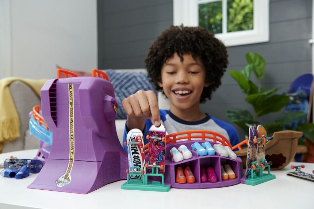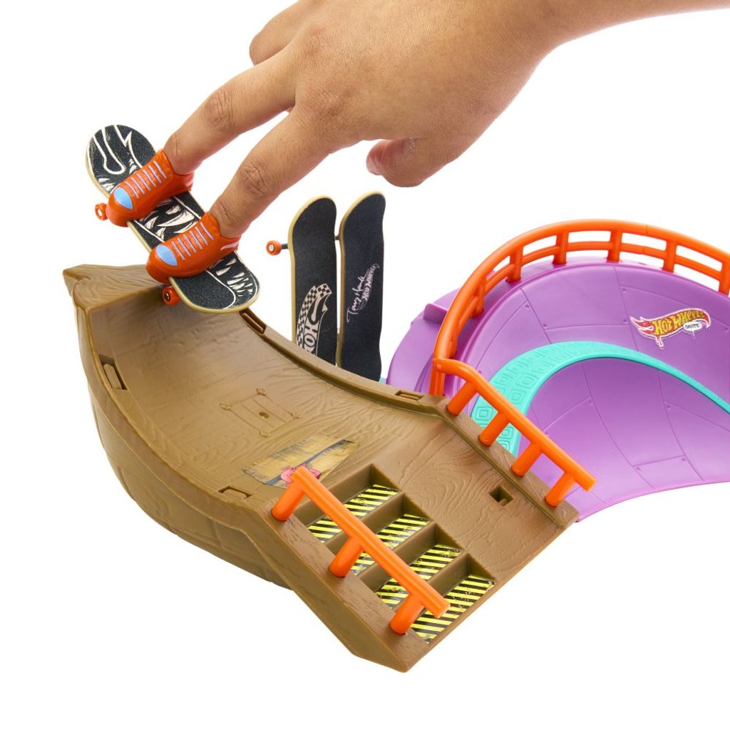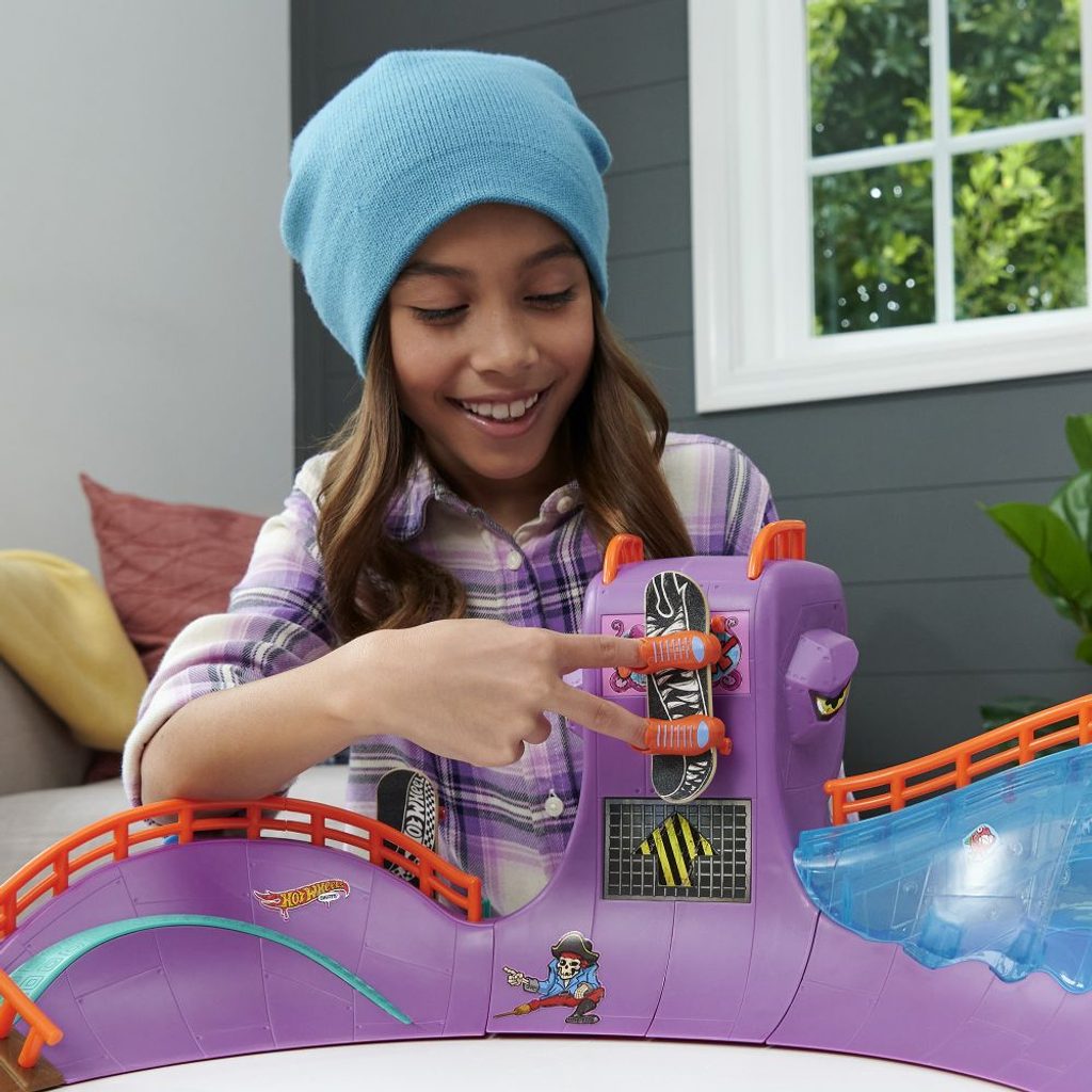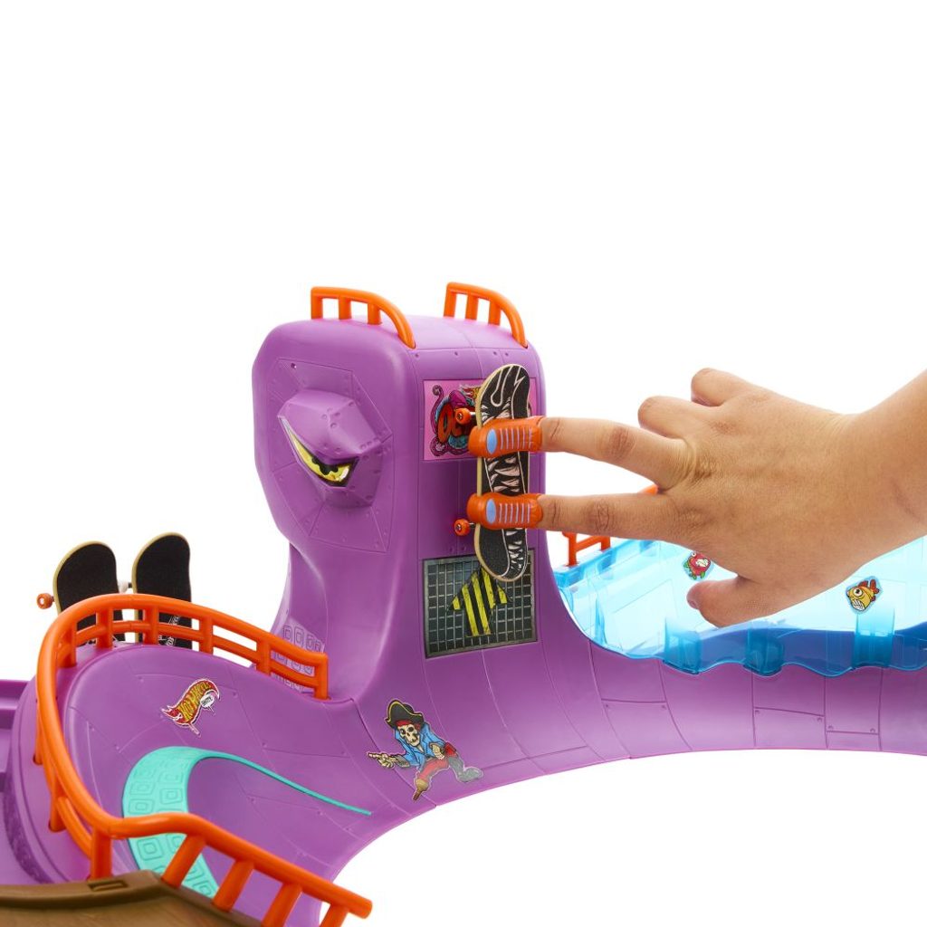 Rozjeďte to stylově na skate sadě Hot Wheels Skate™ Octopark. Seskočte z obří hlavy chobotnice a pusťte se do epické jízdy na fingerboardu, která obsahuje grind raily, vertikální quarterpipes a překvapení v podobě žraločího chřtánu. Součástí balení je jeden exkluzivní, kompletně sestavený fingerboard a pár odnímatelných skate bot. Do úložného prostoru na zadní straně se vejdou další tři prkna a pět párů bot (další prkna a boty se prodávají samostatně.) Barvy a provedení se mohou lišit. Obsahuje 1 sadu Hot Wheels Skate™ Octopark Skate Set s 1 exkluzivním fingerboardem a 1 párem skate bot.