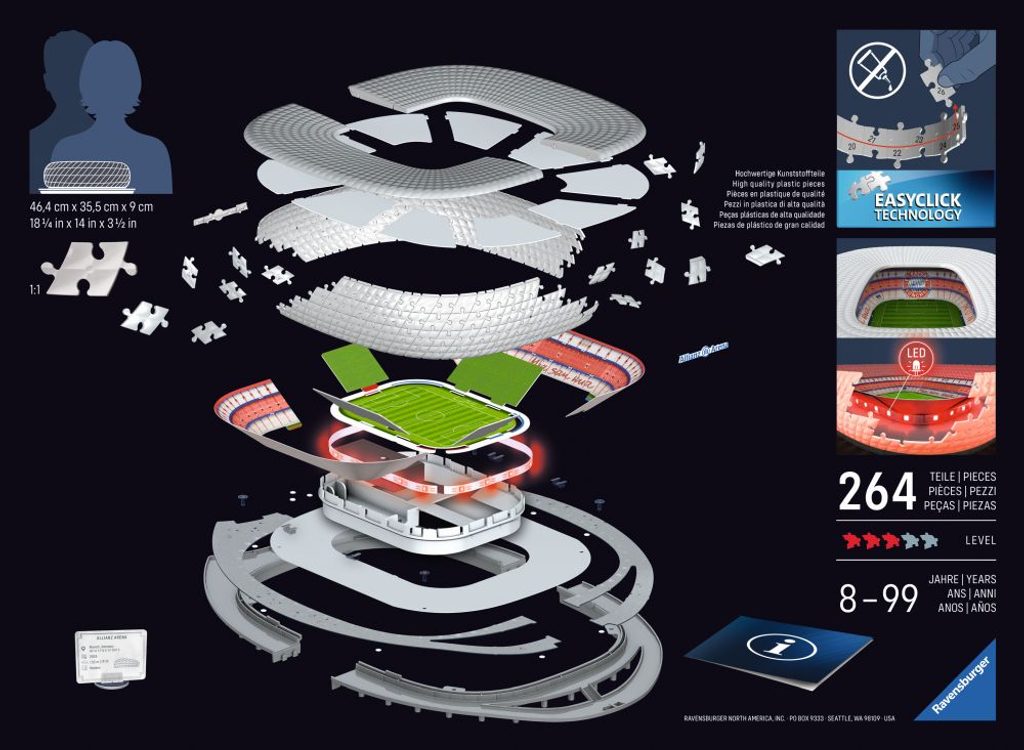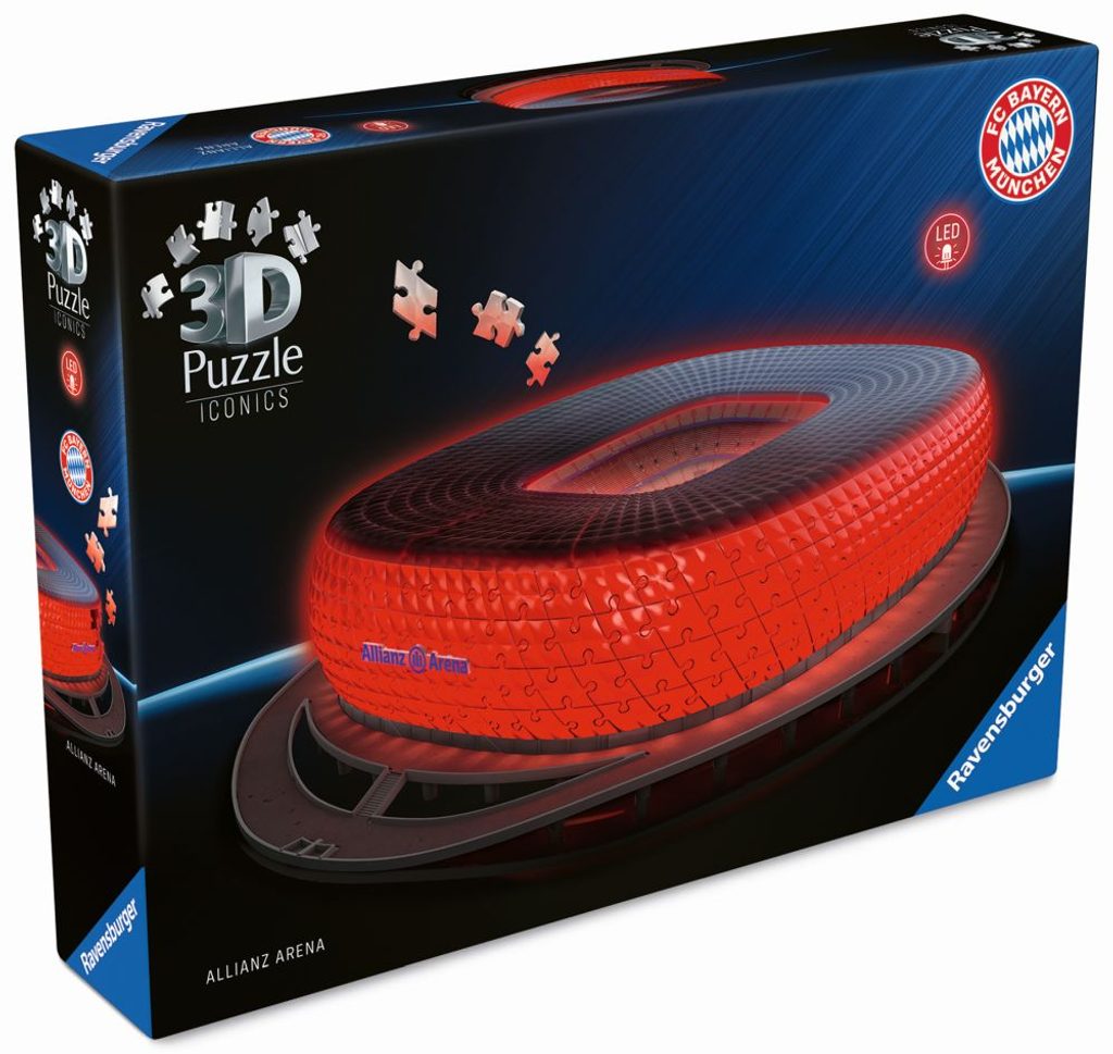 Postavte si osvětlený model Allianz Areny z Iconics edice pomocí stabilních plastových dílků a nechte ho rozzářit pomocí LED světla. Více možností v nastavení světla.