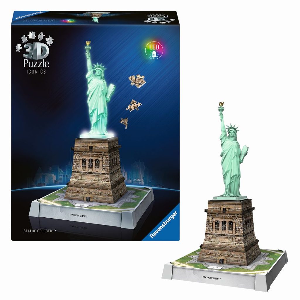 Postavte si osvětlený model Sochy svobody z Iconics edice ze stabilních plastových dílků a rozsviťte ho LED světlem. Více možností v nastavení světla.