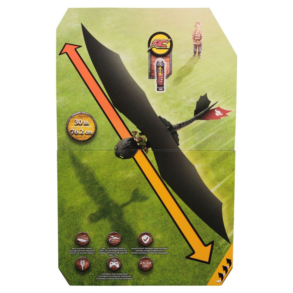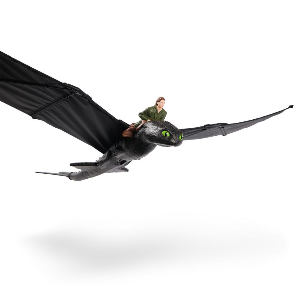 Létající drak Bezzubka na dálkové ovládání s figurkou Škyťáka. Vhote draka do vzduchu a ovladačem aktivujte letovou fázi. Drak začne mávat křídly a velmi realisticky letí. Ovladačem se kontroluje pouze výška. Směr letu se určí natočením jeho ocasu a podle toho opisuje velký nebo menší oblouk letu.