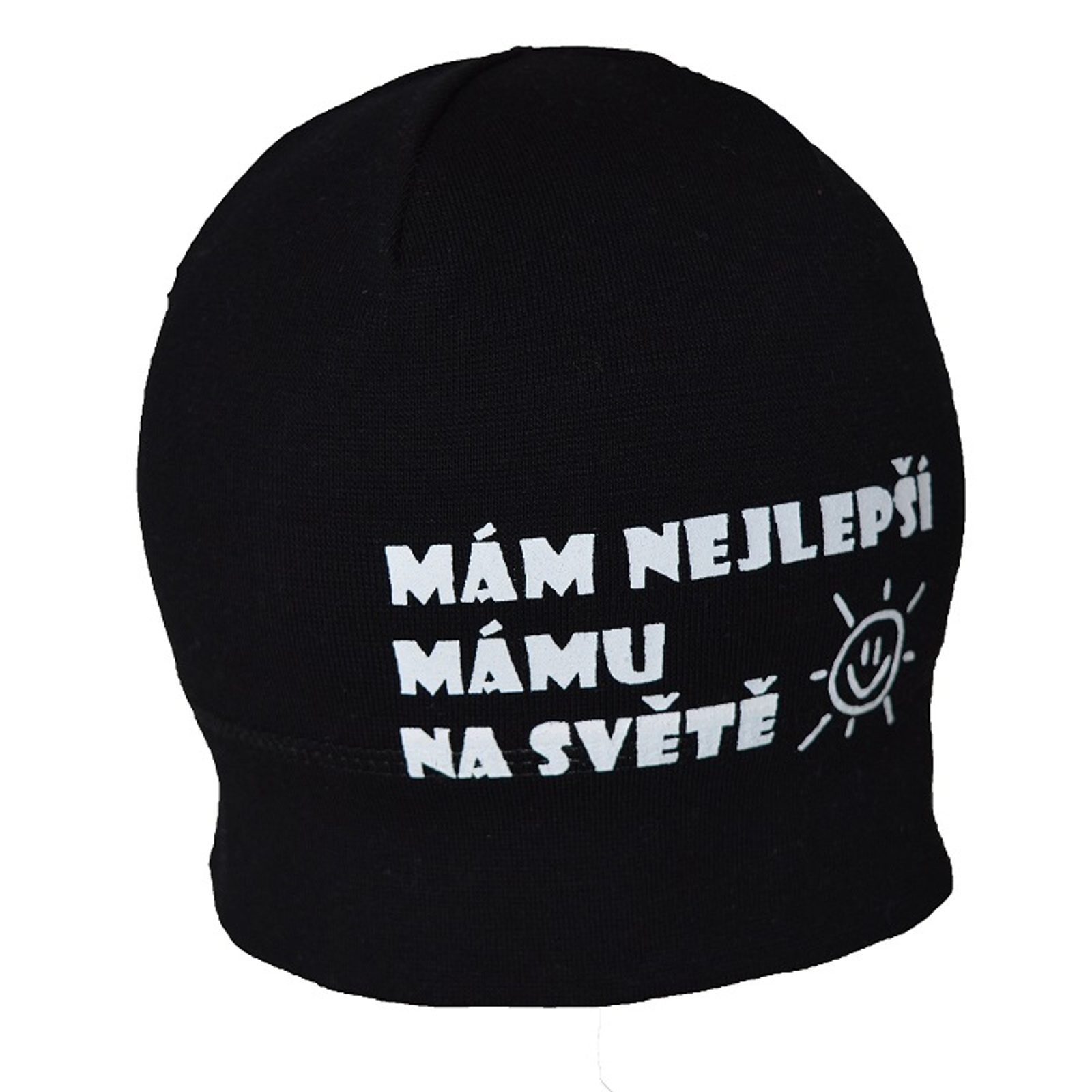 Bavlněná čepička s nápisem "Mám nejlepší mámu na světě".