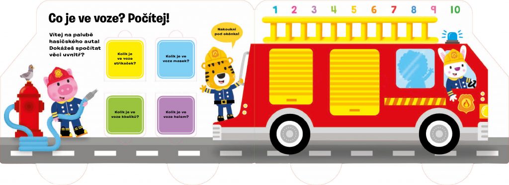 V tomto zábavném leporelu s veselými obrázky a více než 25 otevíracími okénky se děti seznámí s rozmanitou a záslužnou činností hasičů. Dozvědí se, co všechno ke své práci potřebují, v jakých situacích dokážou pomoct a jací další hrdinové-záchranáři s nimi spolupracují. Zároveň se procvičí v počítání nebo třeba v určování protikladů.