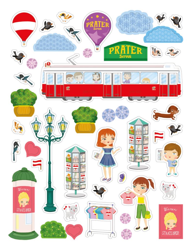 Známé vídeňské scenerie mohou doplňovat spoustou krásných samolepek podle vlastní fantazie a v knížce najdou také mnoho zajímavých informací o zdejších památkách, ale také třeba o obyvatelích této země.