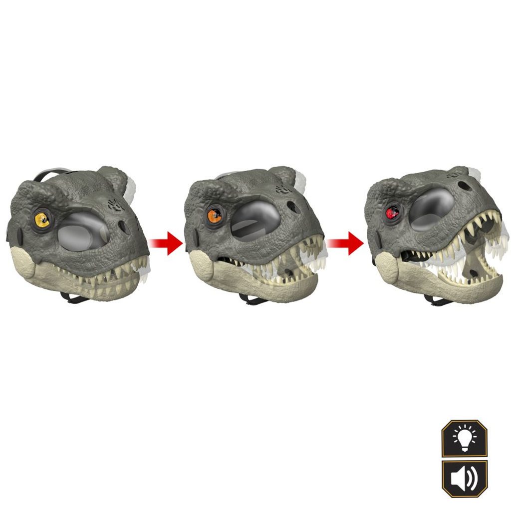 Staňte se T-Rexem! Tato maska T-Rexe s LED blikajícíma očima, ostrými zuby a hrůzostrašným vrčením promění děti v oblíbeného dinosaura z filmu. Nabízí tři úrovně zuřivosti – čím víc otevřete tlamu, tím divočejší světelné efekty a silnější zvuky uslyšíte! Při rychlém otevření čelisti se spustí ikonické zařvání T-Rexe a zorničky se rozšíří. Maska má nastavitelný pásek pro bezpečné uchycení a otvory pro oči a ústa pro pohodlné nošení.