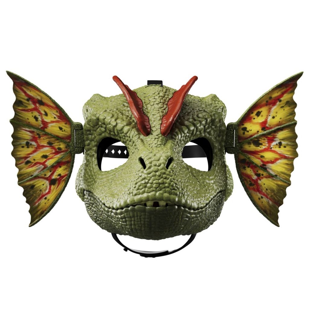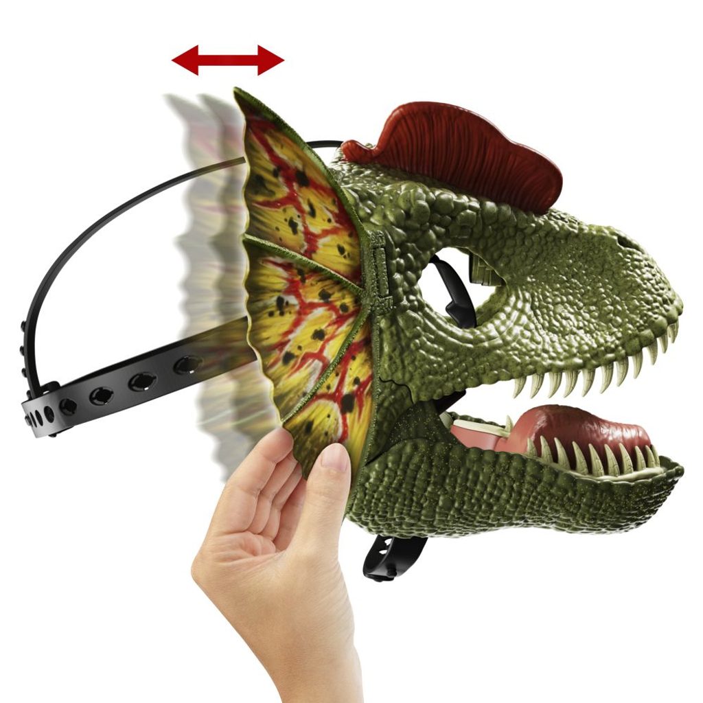 Dilophosaurus maska na obličej jistě nadchne každého fanouška Jurského světa. Otevřením čelisti se aktivuje stříkání vody. Otevřená čelist také spustí řev a skřehotání spolu s vystavením děsivě vypadajících zubů. Ručně si nastavte ikonický límec dilophosaura, abyste získali charakteristický vzhled dinosaura přímo z filmů.