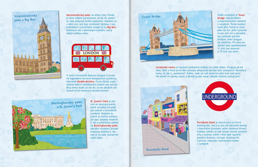 Oblíbená série minimiki přichází s další novinkou v podobě zábavné samolepkové knížky, v níž budou děti společně s panenkou Kate a jejími kamarádkami Charlotte a Emily objevovat nejznámější kouty britské metropole Londýna. Známé londýnské scenerie mohou doplňovat spoustou krásných samolepek podle vlastní fantazie a v knížce najdou také mnoho zajímavých informací o tamních památkách, známých místech, ale také třeba o historii tohoto významného světového velkoměsta.