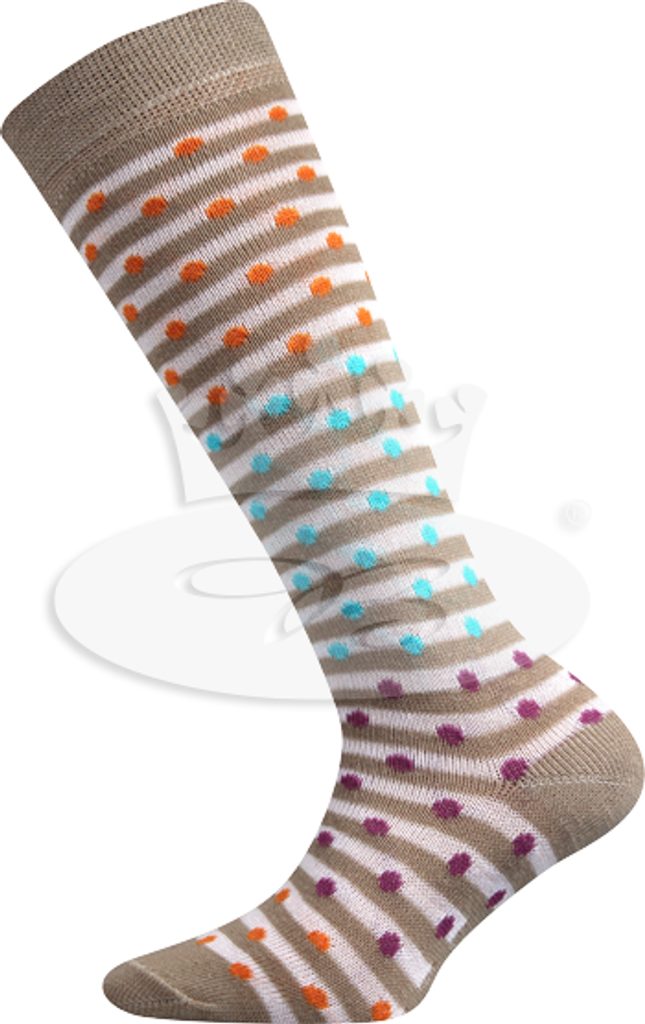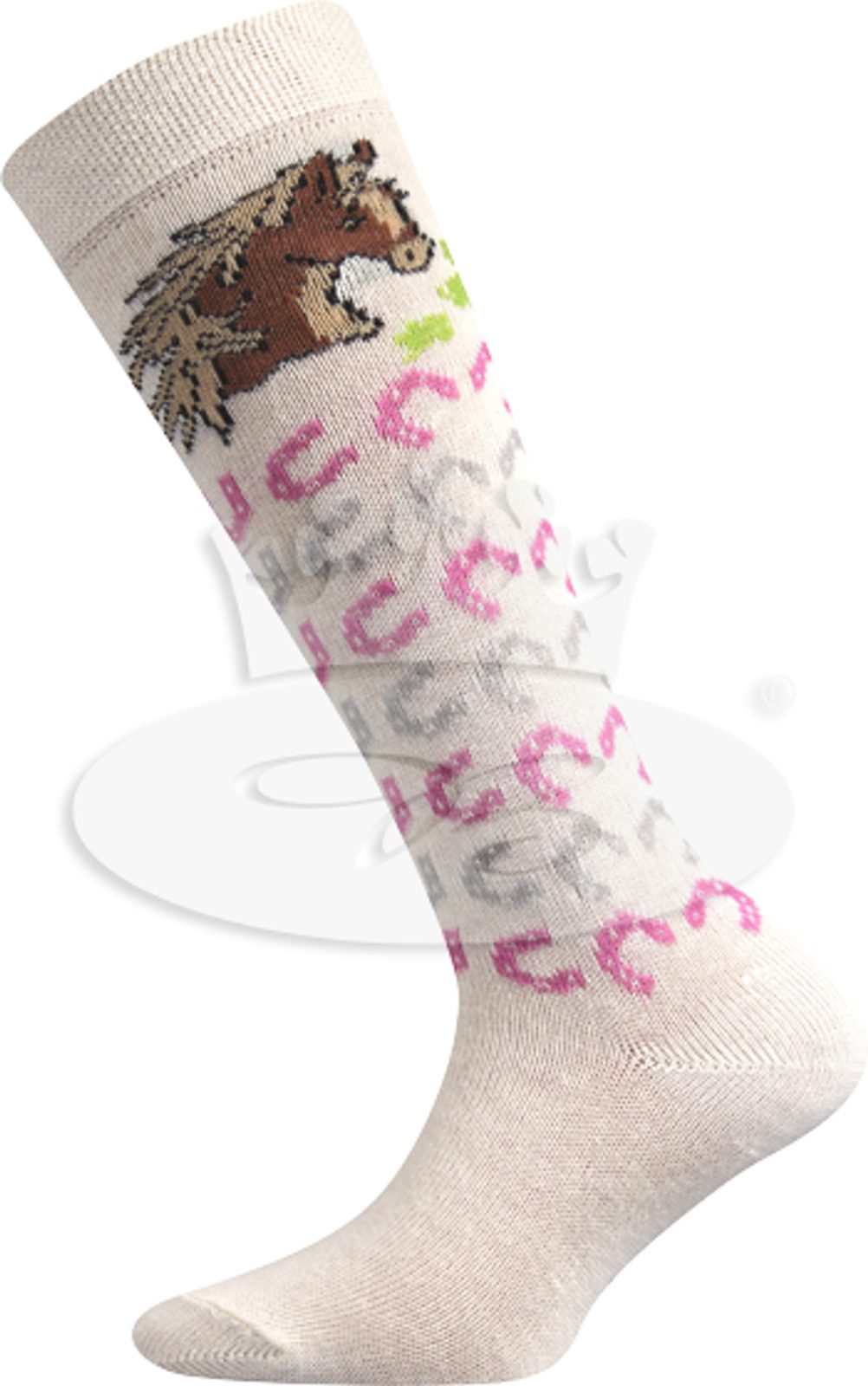 Dětské slabé vzorované podkolenky. Materiál: 80% bavlna, 15% polyamid, 5% elastan.