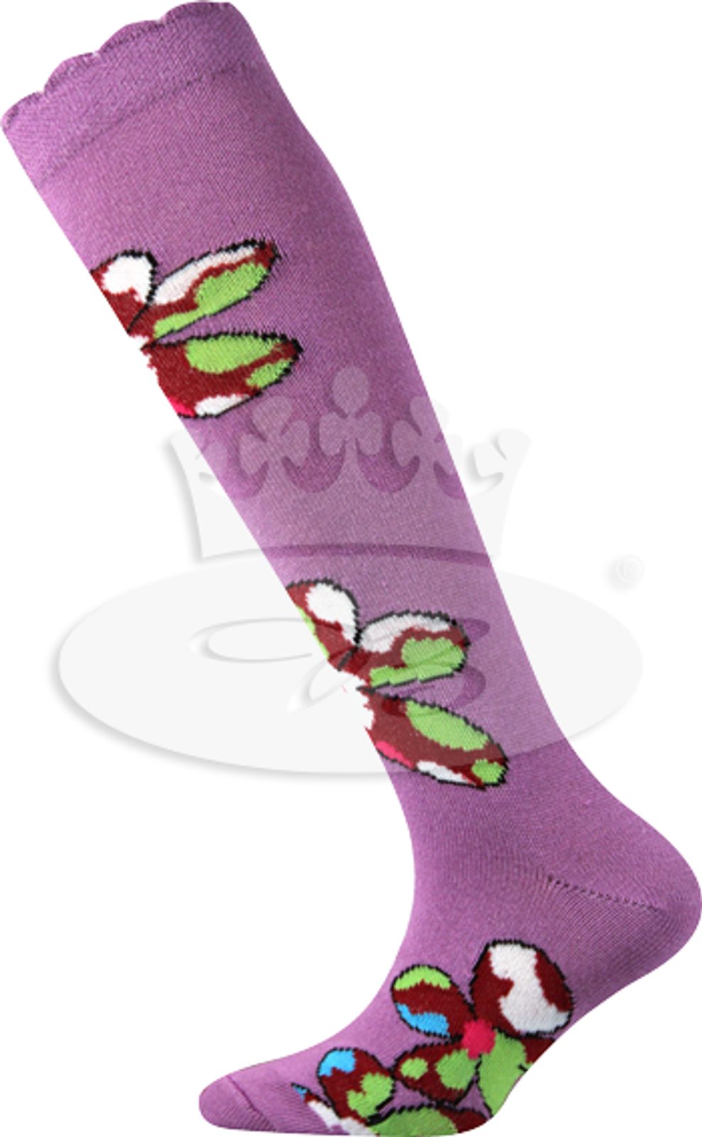 Dětské slabé vzorované podkolenky. Materiál: 80% bavlna, 15% polyamid, 5% elastan.