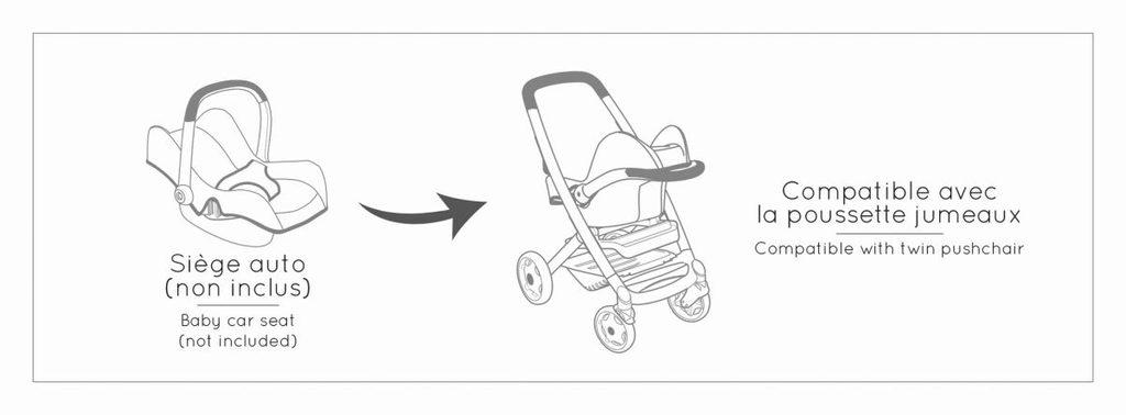 Všestranný kočárek pro panenky 3 v 1 v originálním designu Quinny. Moderní multifunkční kočárek pro panenky lze díky vyměnitelné korbičce během chvilky přestavět na praktický sportovní kočárek pro panenky. Vrchní část lze v několika jednoduchých krocích sundat a panenku s sebou vzít kamkoli půjdete v praktickém košíku. Potahy kočárku jsou vyrobeny z robustní plastové tkaniny. Pro čištění je lze snadno otřít vlhkým hadříkem. Pro panenky do velikosti 42 cm. Panenka není součástí balení. Výška k ergonomické rukojeti je 65 cm. Přední kolečka otočná, kolečka s protihlukovou vrstvou. Průměr koleček 15,5 cm a 12,5 cm. Rozměry produktu (DxŠxV): 54,5 x 38,5 x 64 cm.