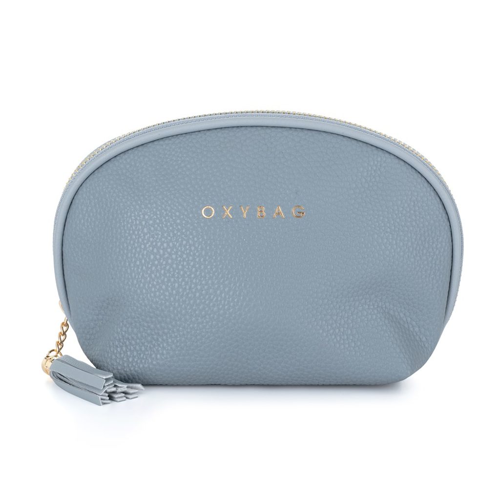 Cestovní kulatá kosmetická taška v šedém provedení. Vhodná k uskladnění toaletních a kosmetických potřeb menší velikosti.