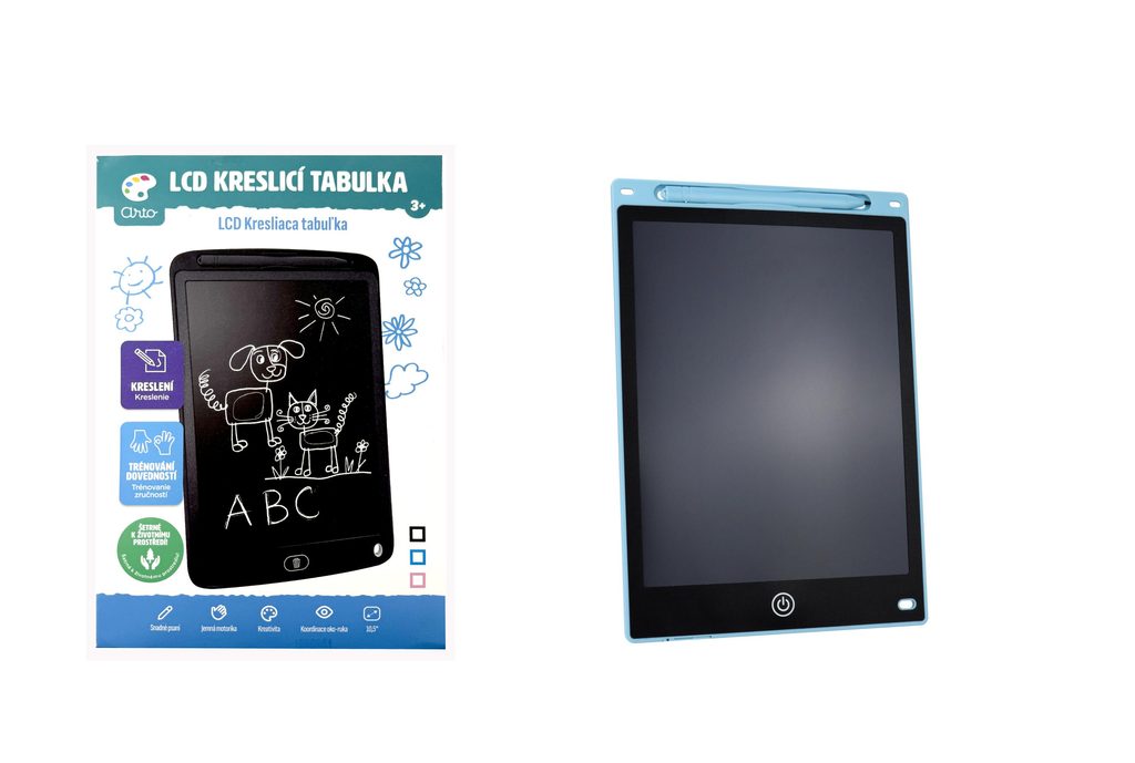 Kreslící tabulka - tablet. Přiloženou tužkou nakresli obrázek na tabulku a zmáčknutím jednoho tlačítka ho smaž. Tabulka je ve tvaru úzkého tabletu. Je moderní a designová. Má barevný podklad - nakreslené obrázky jsou na ní barevné.