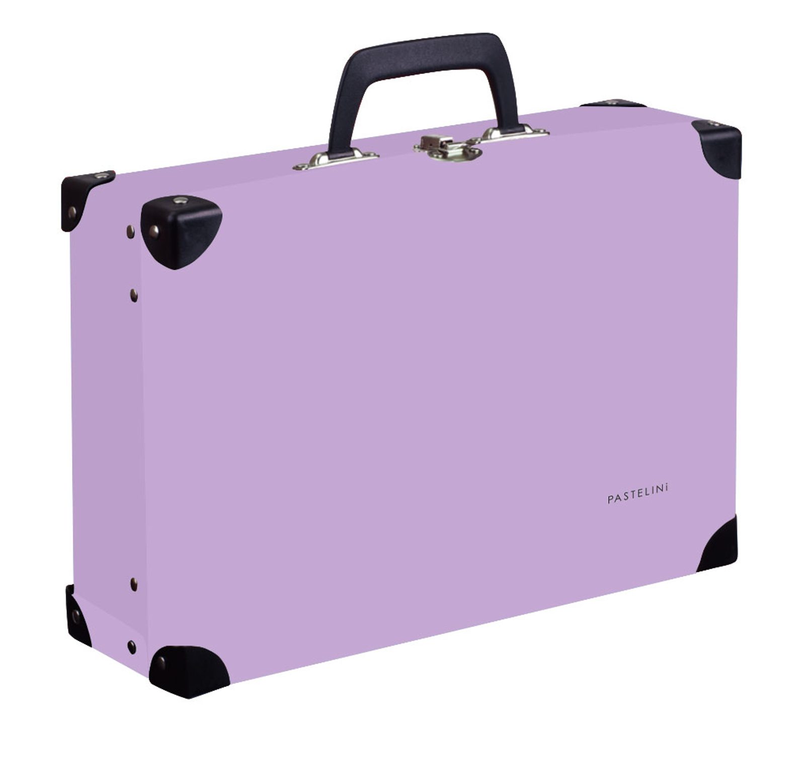 Lamino kufřík z odolného materiálu, vhodný na úschovu hraček, výtvarných potřeb atd. Kovový zámeček, plastové držadlo a rožky.