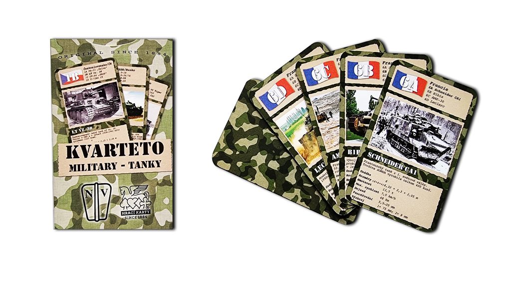 …edice her Military přináší ve zcela originální grafice kvarteto s fotografiemi historických i současných válečných obrněných vozidel a tanků. . Hra vznikla ve spolupráci s nakladatelstvím Naše vojsko – knižní distribuce, s.r.o.