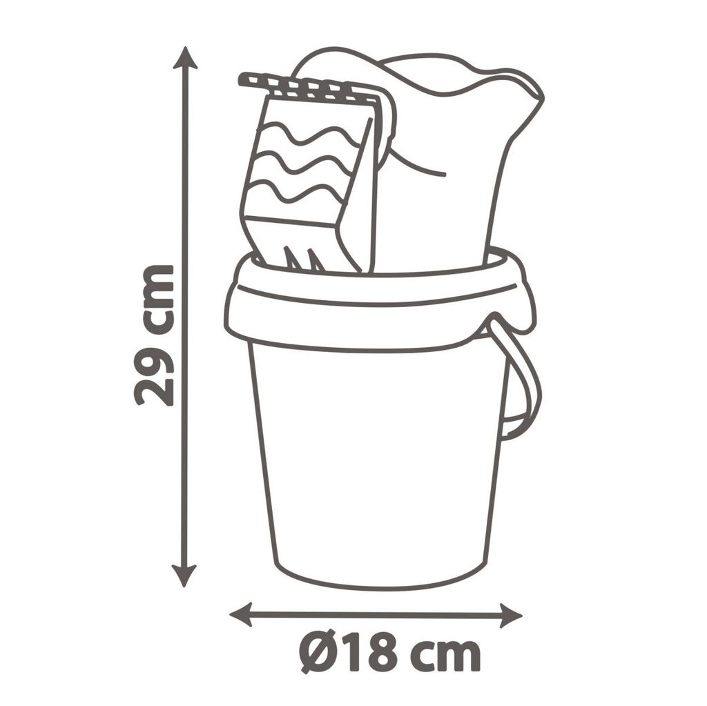 Set na písek s motivem Minnie. Součástí je sítko, hrabičky, lopatka, formička na písek ve tvaru srdíčka nebo kytičky a konvička. Průměr kyblíčku 17 cm. Výška kyblíčku 18 cm.