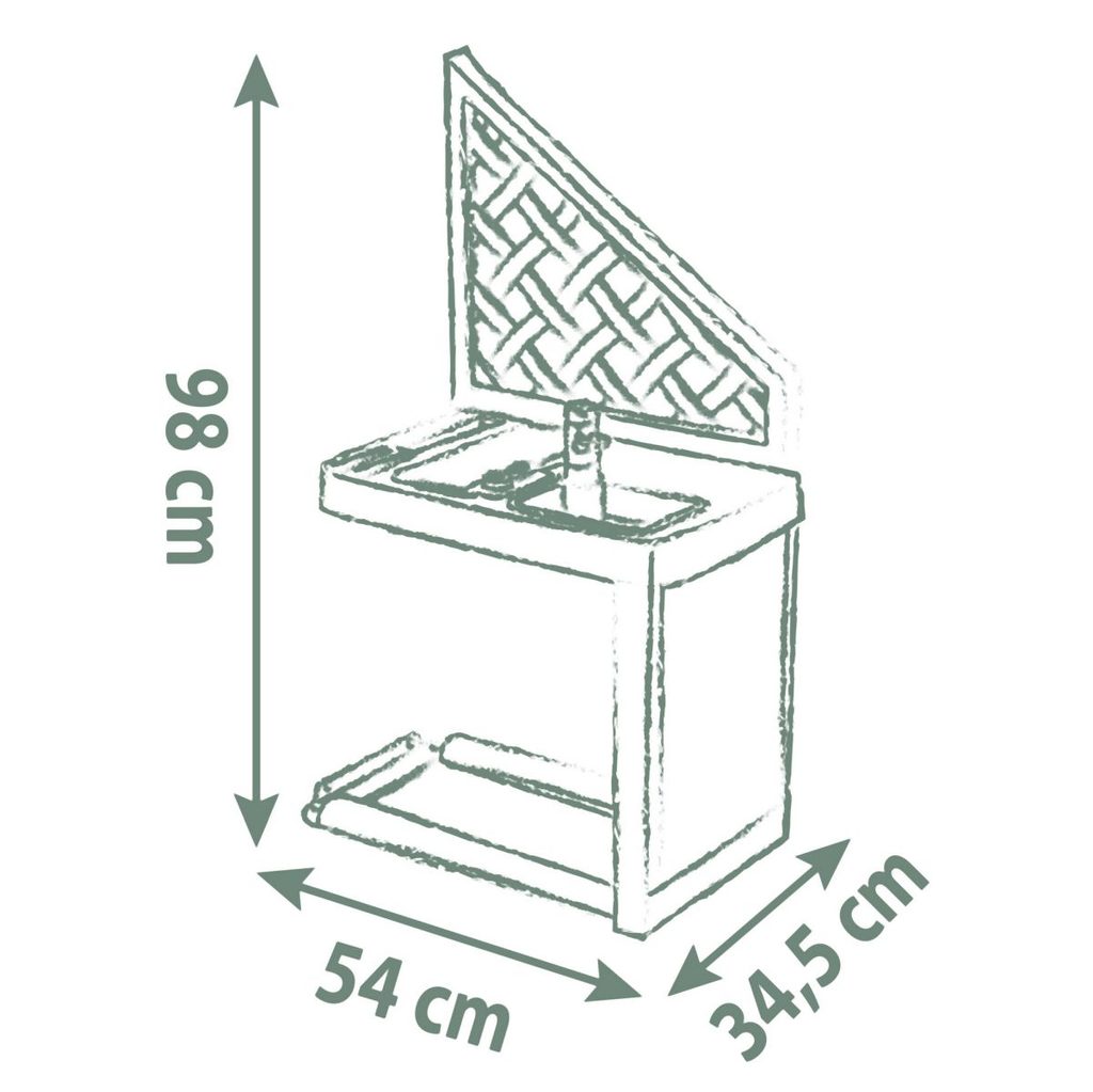 Letní kuchyňka jako doplněk pro domeček Neo Jura Lodge,Pretty, Nature, My Neo House, Neo Friends House, Chef, Boss House, My New house, Green Jura Lodge a Green Evo Friends House. Skládá se z grilu a umyvadla s kohoutkem. Obsahuje 17 doplňků - 2 sklenice, 2 talíře, 2 klobásy, hrnec s pokličkou a příbory. Anti-UV ošetření zaručuje dobrou odolnost a trvanlivost barev. Tento výrobek obsahuje minimálně 66 % recyklovaného materiálu. Rozměry produktu (DxŠxV): 54 x 34,5 x 98 cm. Letní kuchyňka jako doplněk pro domeček Neo Jura Lodge,Pretty, Nature, My Neo House, Neo Friends House, Chef, Boss House, My New house, Green Jura Lodge a Green Evo Friends House. Skládá se z grilu a umyvadla s kohoutkem. Obsahuje 17 doplňků - 2 sklenice, 2 talíře, 2 klobásy, hrnec s pokličkou a příbory. Anti-UV ošetření zaručuje dobrou odolnost a trvanlivost barev. Tento výrobek obsahuje minimálně 66 % recyklovaného materiálu. Rozměry produktu (DxŠxV): 54 x 34,5 x 98 cm.
