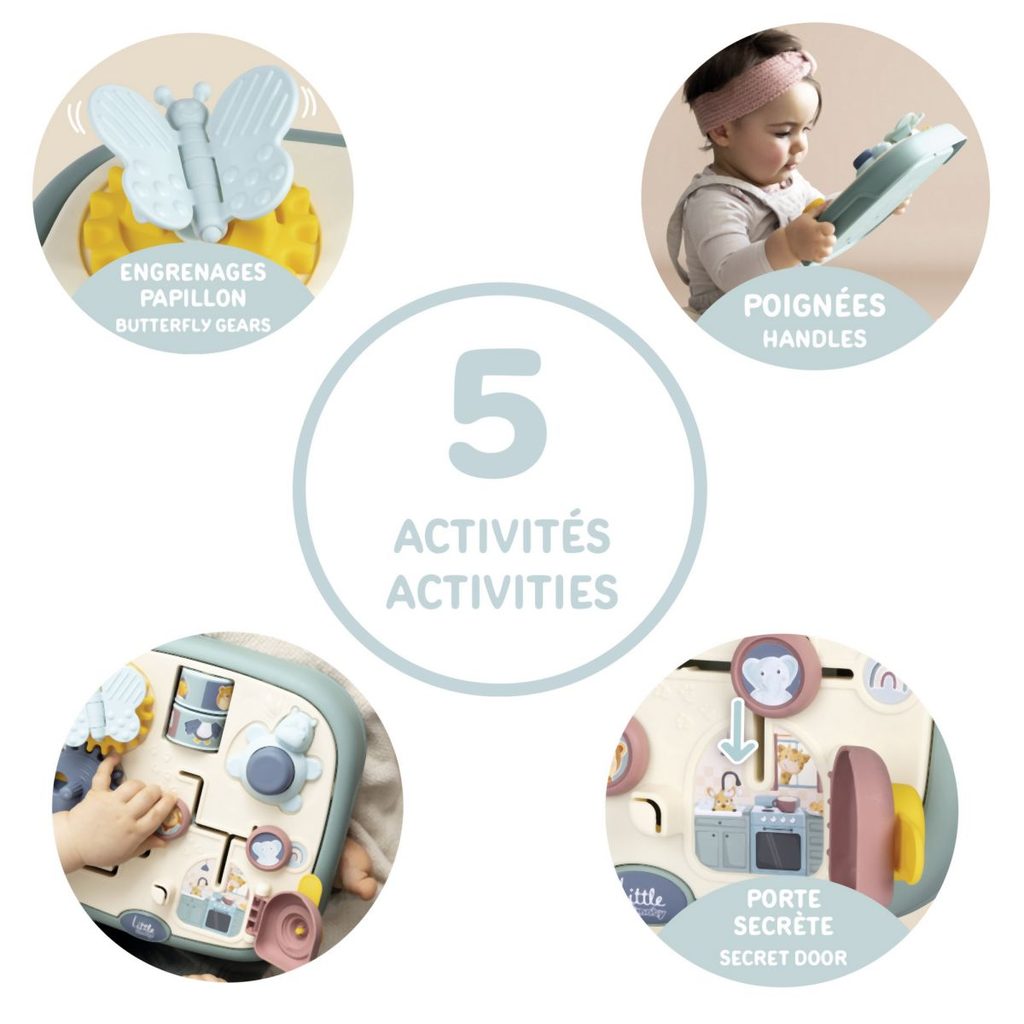Motorická deska Little Smoby s 5 různými a originálními aktivitami: labyrint, dveře se zámkem, ozubená kola, válečky a tlačítko. Rukojeti na straně poskytují dítěti pevný úchop. Slouží k rozvíjení…