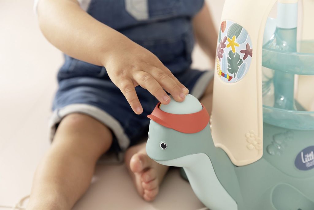 Barevná želva z řady Little Smoby je výrobek 2 v 1: okruh pro míčky a tahací hračka. Jednoduše vložte míček do horní části krunýře a ten se sroluje až na konec želvího ocasu, kde se opět vykulí. Želva je na provázku. Trénuje motoriku a koordinaci, pro děti od 12 měsíců. Balení obsahuje i dva míčky. Rozměry výrobku 28x20x29.