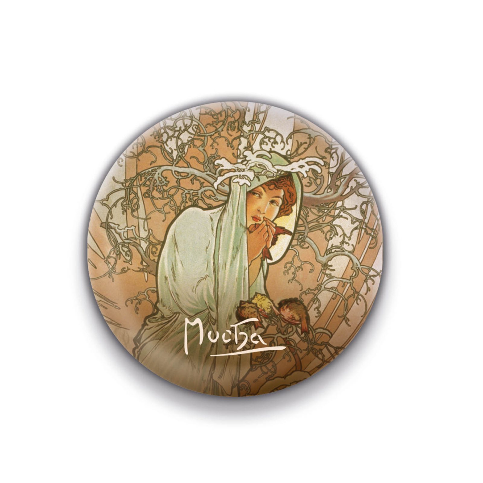Magnet Alfons Mucha – Zima, kulatý, 5 cm