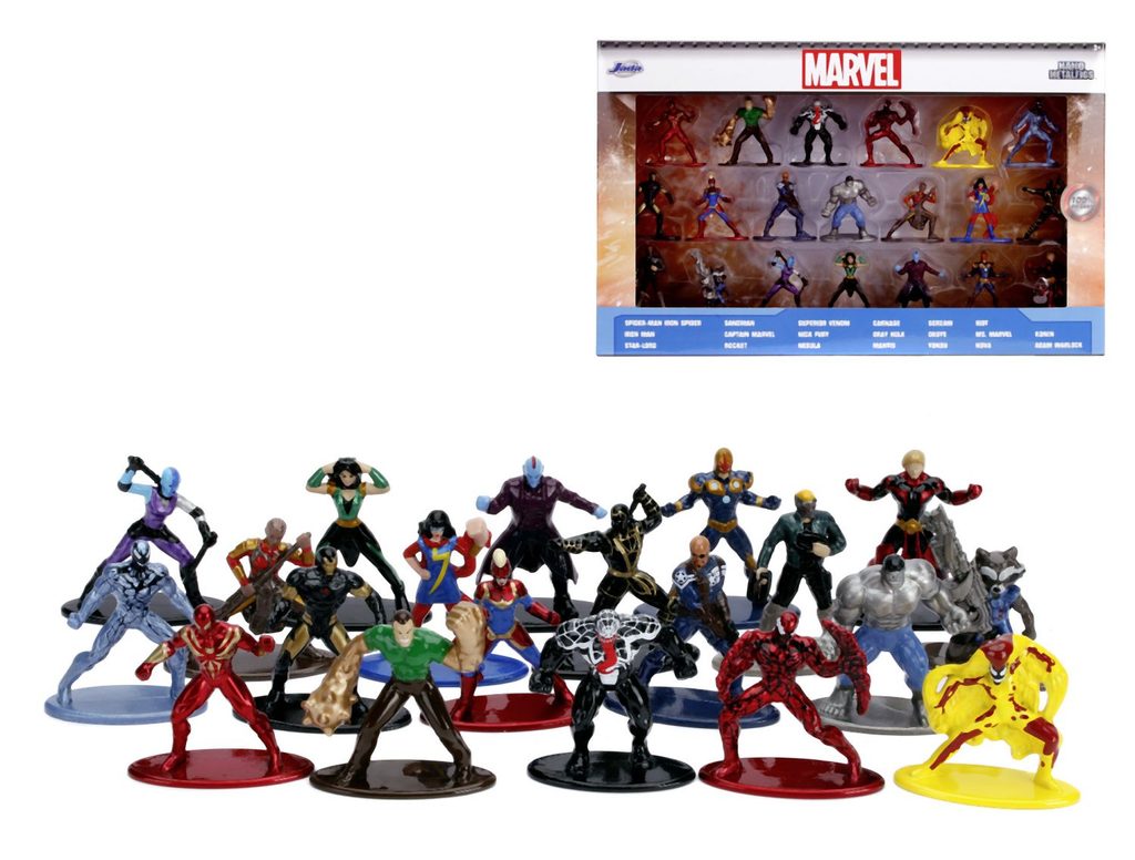 Kovové nanofigurky v licenci Marvel. Výška figurky 4 cm. Sada obsahuje 20 různých figurek.