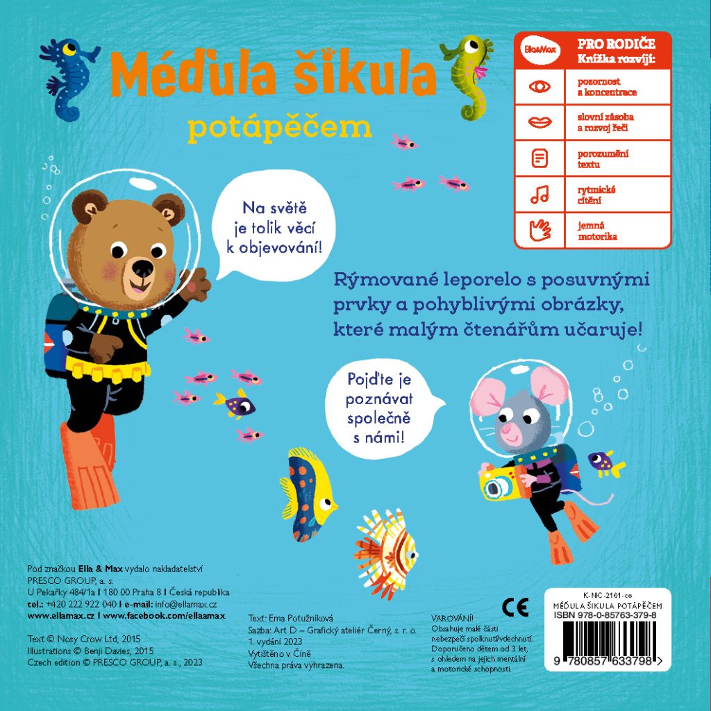 Pojďte objevovat svět společně s Méďulou šikulou! Rýmované leporelo s posuvnými prvky a pohyblivými obrázky malým čtenářům jednoduše učaruje. Knížkou je provede roztomilý méďa, který umí snad úplně všechno… V celé sérii titulů, která nese jeho jméno, se postupně objevuje v nejrůznějších rolích. Ať už se stane astronautem, automechanikem, farmářem, potápěčem, strojvedoucím nebo veterinářem, zvládne Méďula všechno levou zadní!