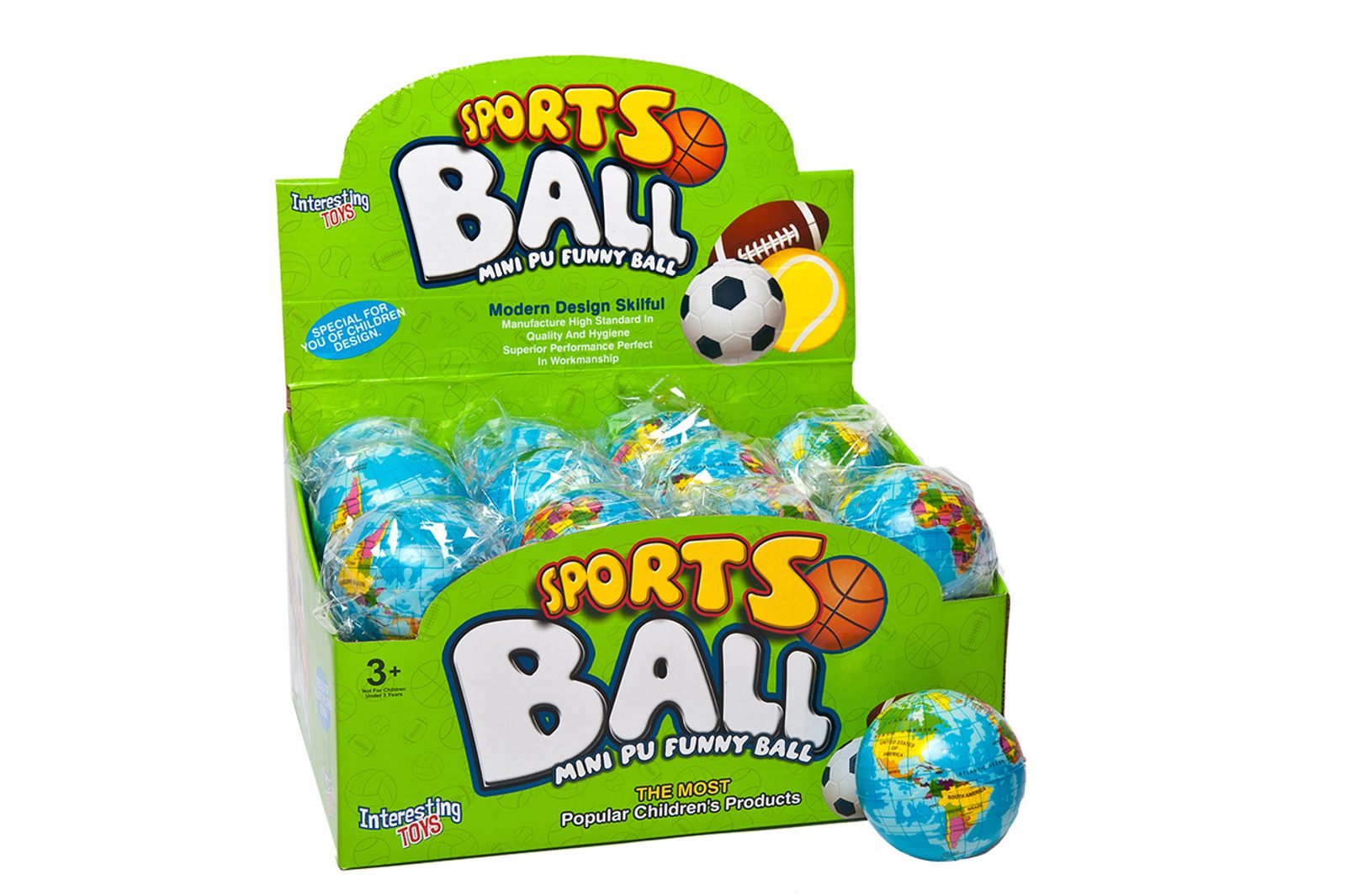 Míček 8 cm průměr s motivem globusu.
