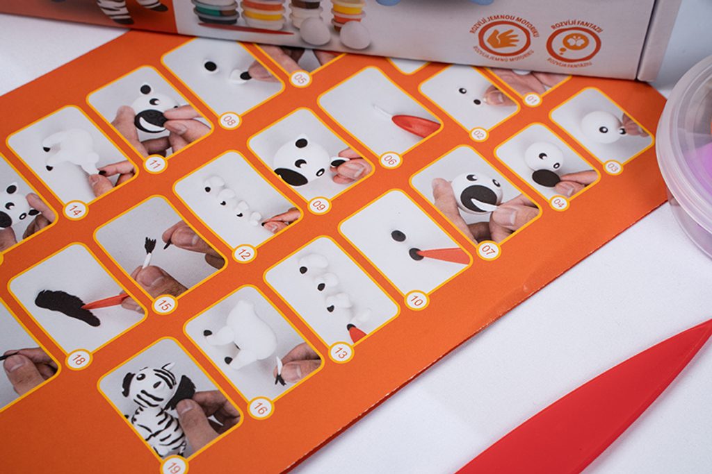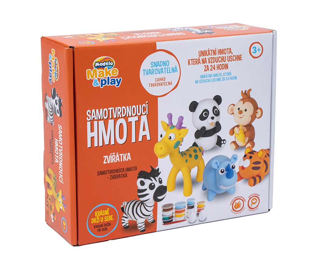 Samotvrdnoucí modelovací hmota. Prémiová kvalita, navíc oproti standardní modelíně po vymodelování na vzduchu sama vytvrdne. Děti si pak mohou se zvířátky dále hrát. Podporuje jemnou motoriku. Balení obsahuje 15 tub modelíny.