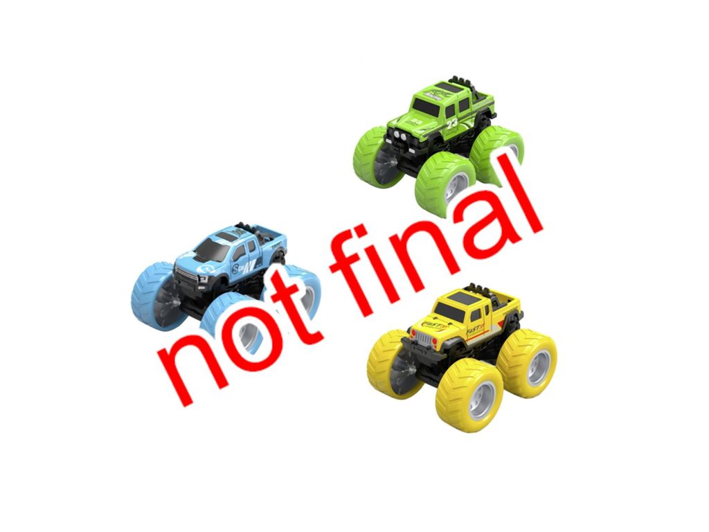 Auto Monster Truck na setrvačník s gumovými pneumatikami. 2 druhy - červený/modrý. Velikost 8,5 cm.