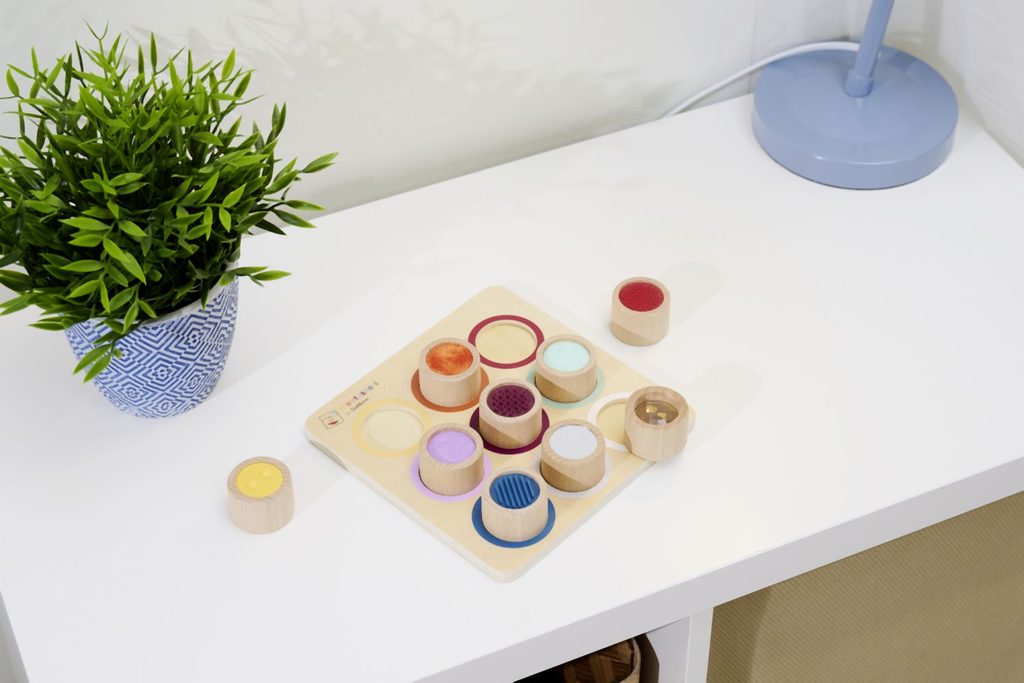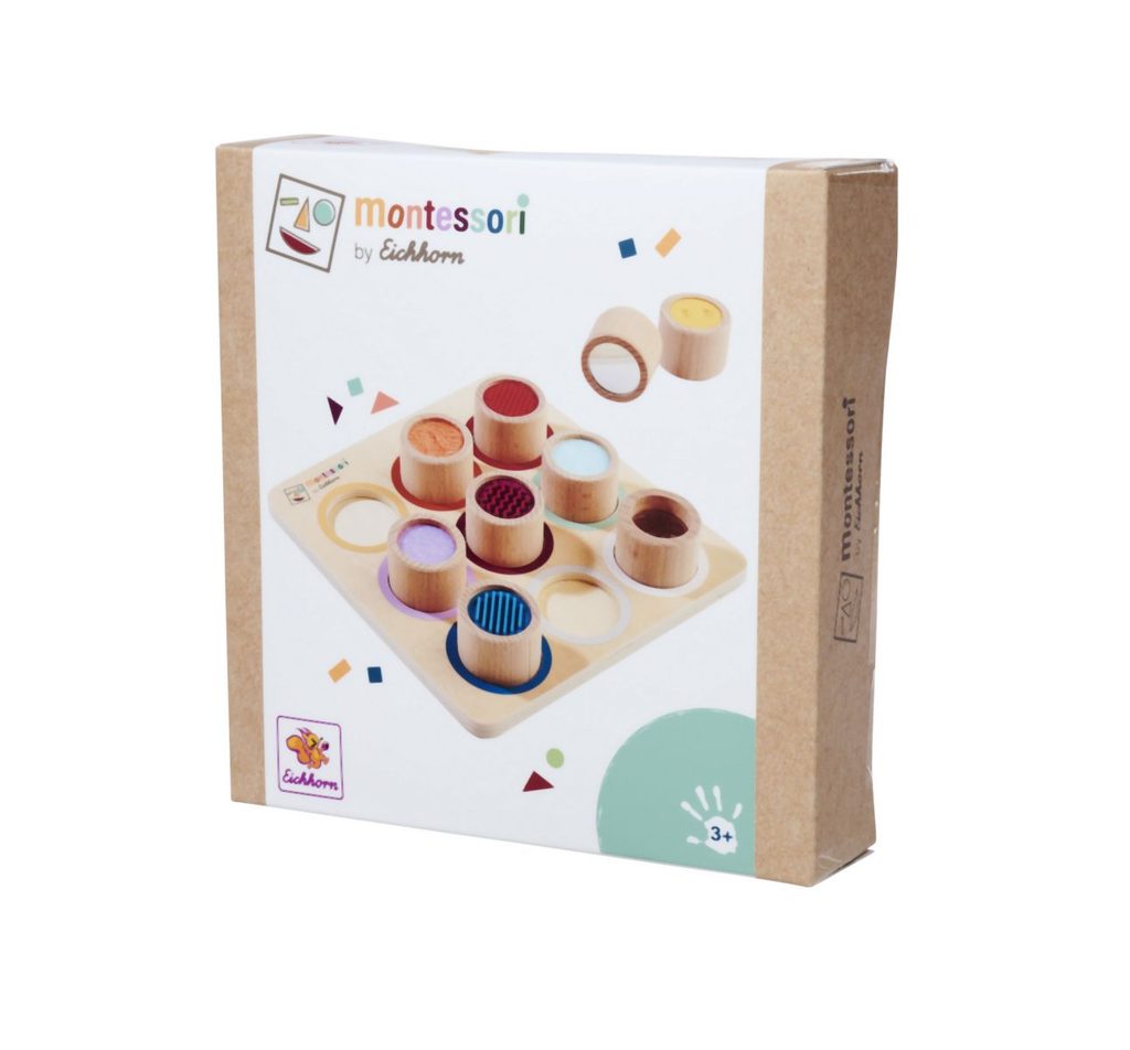 Vnímání je pro dítě důležitým smyslovým vývojem. Hra s různými povrchy a materiály podporuje hmat. Naše Montessori hmatová deska má 9 senzorických válců, ve kterých si dítě může osahat povrchy a textury. Montessori hmatová deska je vyrobena ze 100% bukového dřeva a překližky s certifikací FSC a je vhodná pro děti od 3 let.