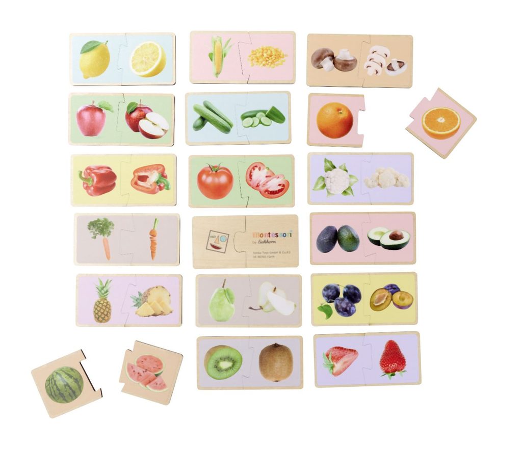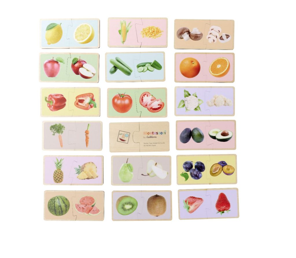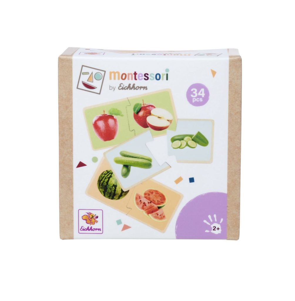 S těmito atraktivními dřevěnými puzzle z řady Montessori se vaše dítě naučí poznávat různé druhy ovoce a zeleniny. Shodné dvojice dílků musí poskládat a poté správně pojmenovat. Na 36 dílcích jsou natištěny realistické obrázky ovoce a zeleniny, které mohou děti vidět v každodenním životě. Dřevěné puzzle Montessori jsou vyrobeny ze 100% kvalitního lipového dřeva s certifikátem FSC a jsou vhodné pro děti od 2 let. S těmito atraktivními dřevěnými puzzle z řady Montessori se vaše dítě naučí poznávat různé druhy ovoce a zeleniny. Shodné dvojice dílků musí poskládat a poté správně pojmenovat. Na 36 dílcích jsou natištěny realistické obrázky ovoce a zeleniny, které mohou děti vidět v každodenním životě. Dřevěné puzzle Montessori jsou vyrobeny ze 100% kvalitního lipového dřeva s certifikátem FSC a jsou vhodné pro děti od 2 let.