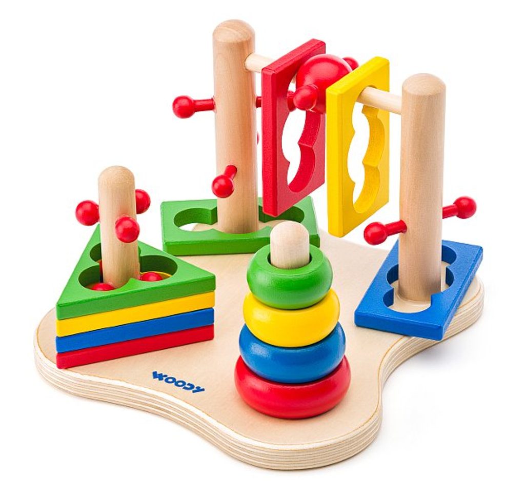 Věk: 2+ Rozměr: 20 x 20 x 15cm Logická hra pro nejmenší, která pomáhá rozvíjet prostorové vnímání a jemnou motoriku. Obsahuje 12dílů. Vyrobeno z kvalitního dřeva, použity nezávadné barvy.