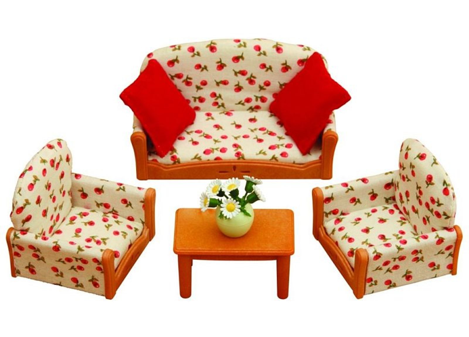 Pohovka, 2 křesla, stoleček a vázička s květinou v žádném obýváku nesmí chybět! Sada neobsahuje postavičky. Věk: 3+
