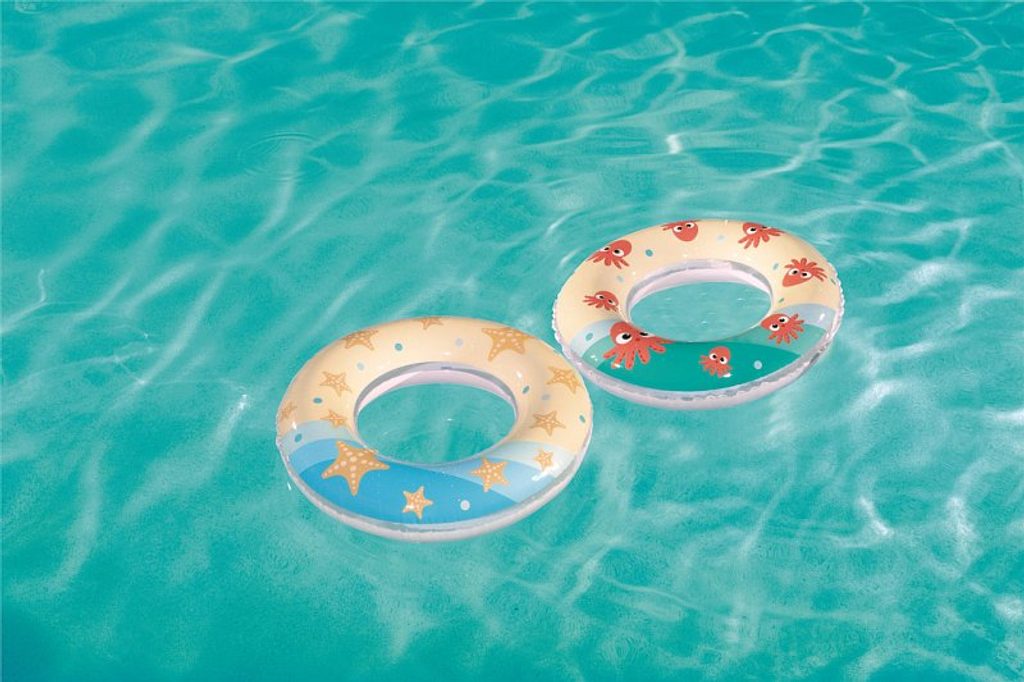 Dětský nafukovací kruh s motivem podmořského dobrodružství. K dispozici ve dvou veselých motivech - chobotnice a hvězdice. Vyrobeno z velmi odolného vinylu. Průměr 61 cm. Věk 3-6 let. Užívání vždy pod dohledem dospělé osoby.