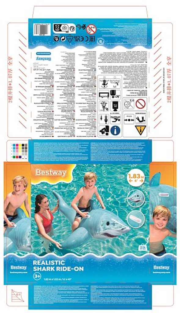 Obsahuje: 1 nafukovací žralok, 1 opravná sada.