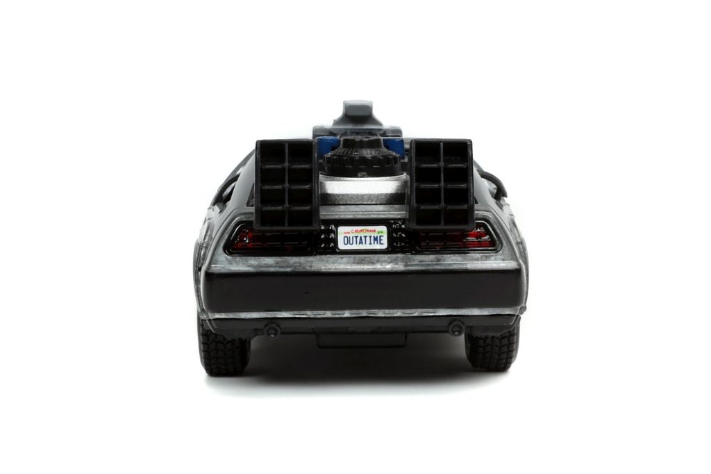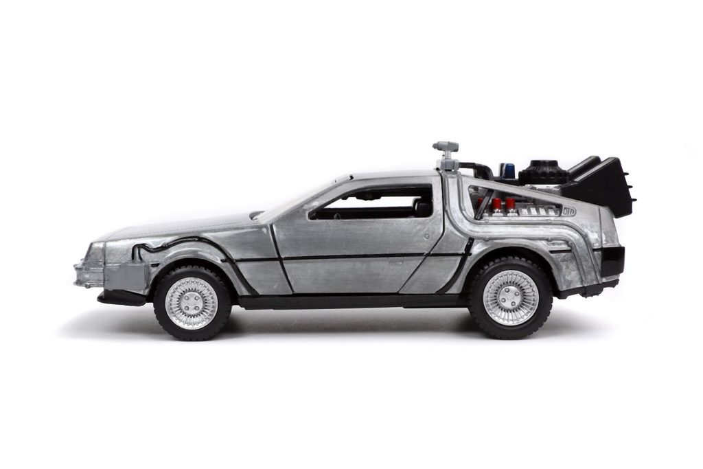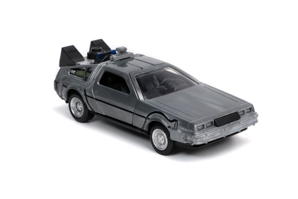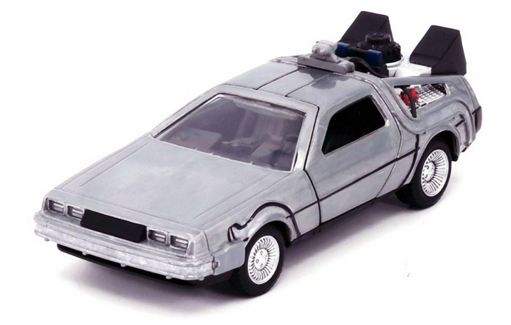 Kovový model Time Machine Back to the Future 1 na volnoběh v měřítku 1:32 s otevíracími dveřmi. Displej obsahuje 6 ks.