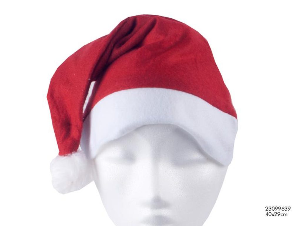 Klasická červeno-bílá čepice Santa s bambulkou. Je vhodná na kostým Santy Clause na karnevaly a vánoční večírky. Materiál - plsť.