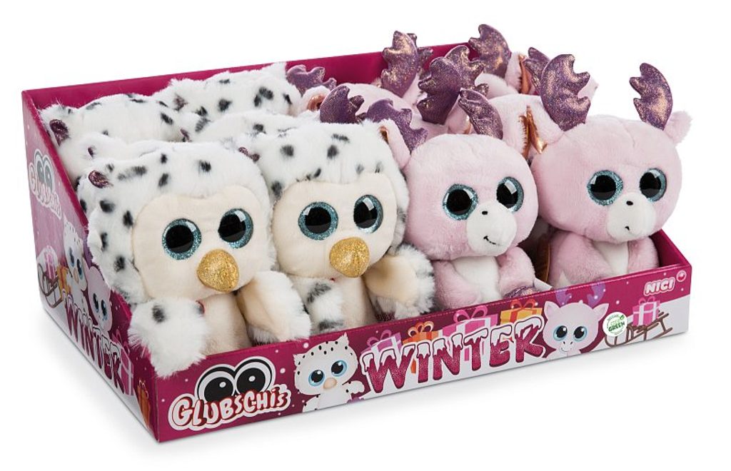 NICI NICI Glubschis DISPLAY plyš Sob Rosani a Sova Ulula 15cm, 12ks á 2 druhy, GREEN