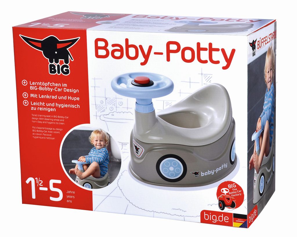 Nočník Big s volantem a s klaksonem. Vyšší opěrka zad, široká, stabilní základna. Barva šedá. Rozměry: 43 x 28 x 31 cm.