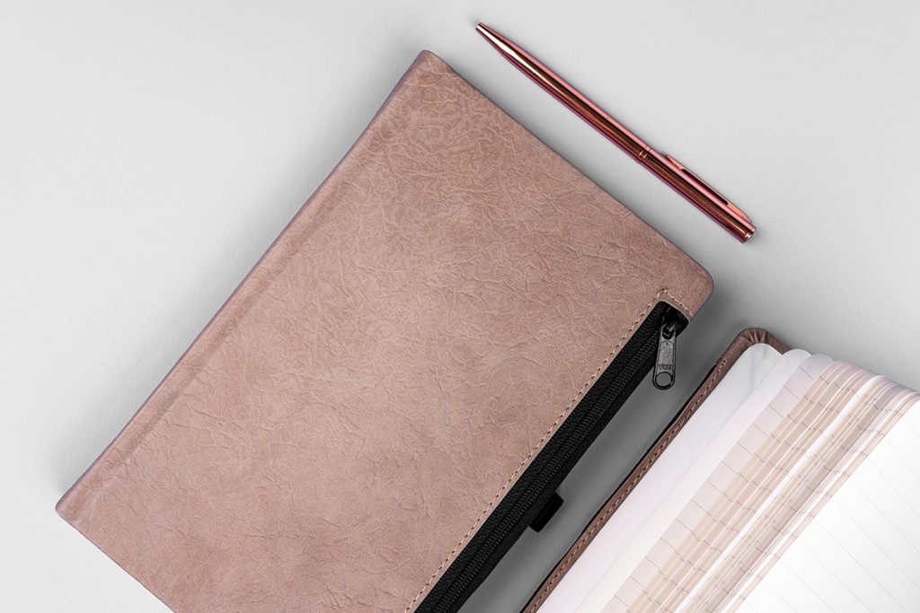 - Vazba: tuhá knižní s kapsičkou na zip + poutko na tužku