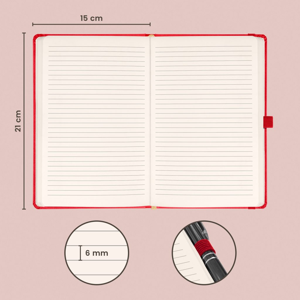 - Vazba: tuhá knižní s gumičkou na uzavření a poutkem na tužku