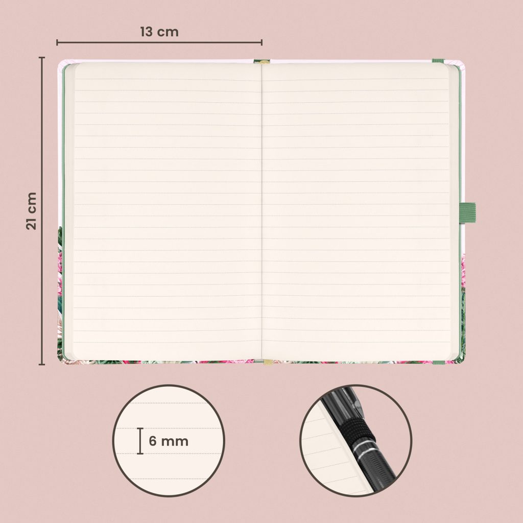 • Vazba: tuhá knižní s gumičkou na uzavření a poutkem na tužku