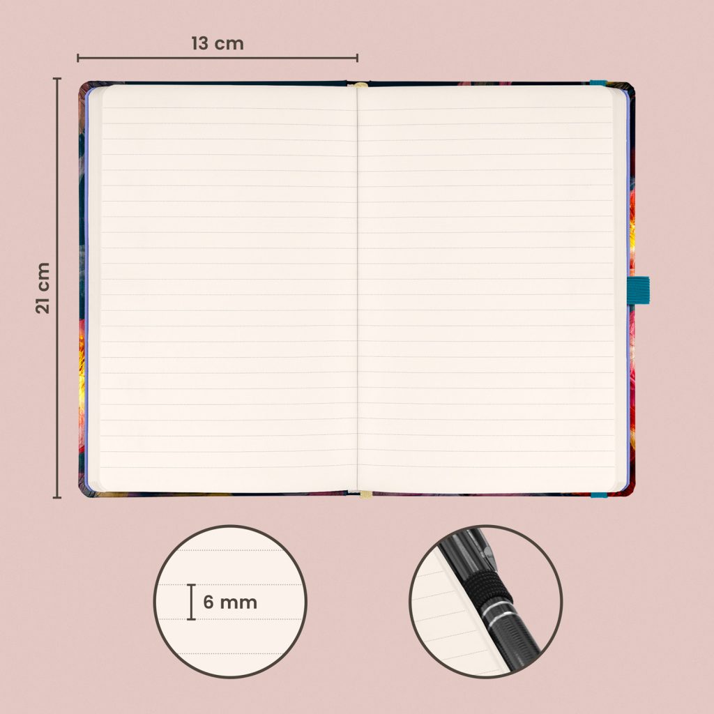 • Vazba: tuhá knižní s gumičkou na uzavření a poutkem na tužku