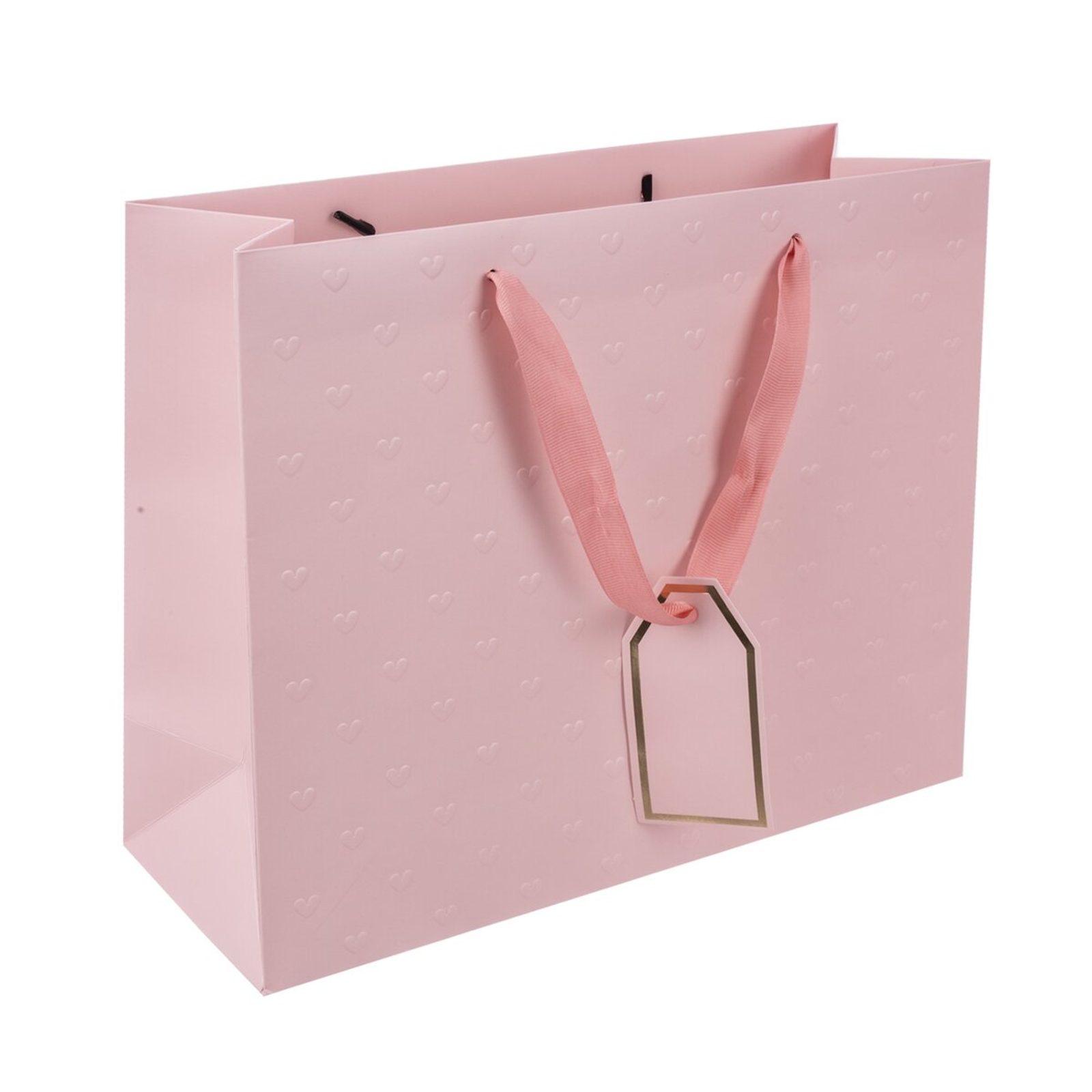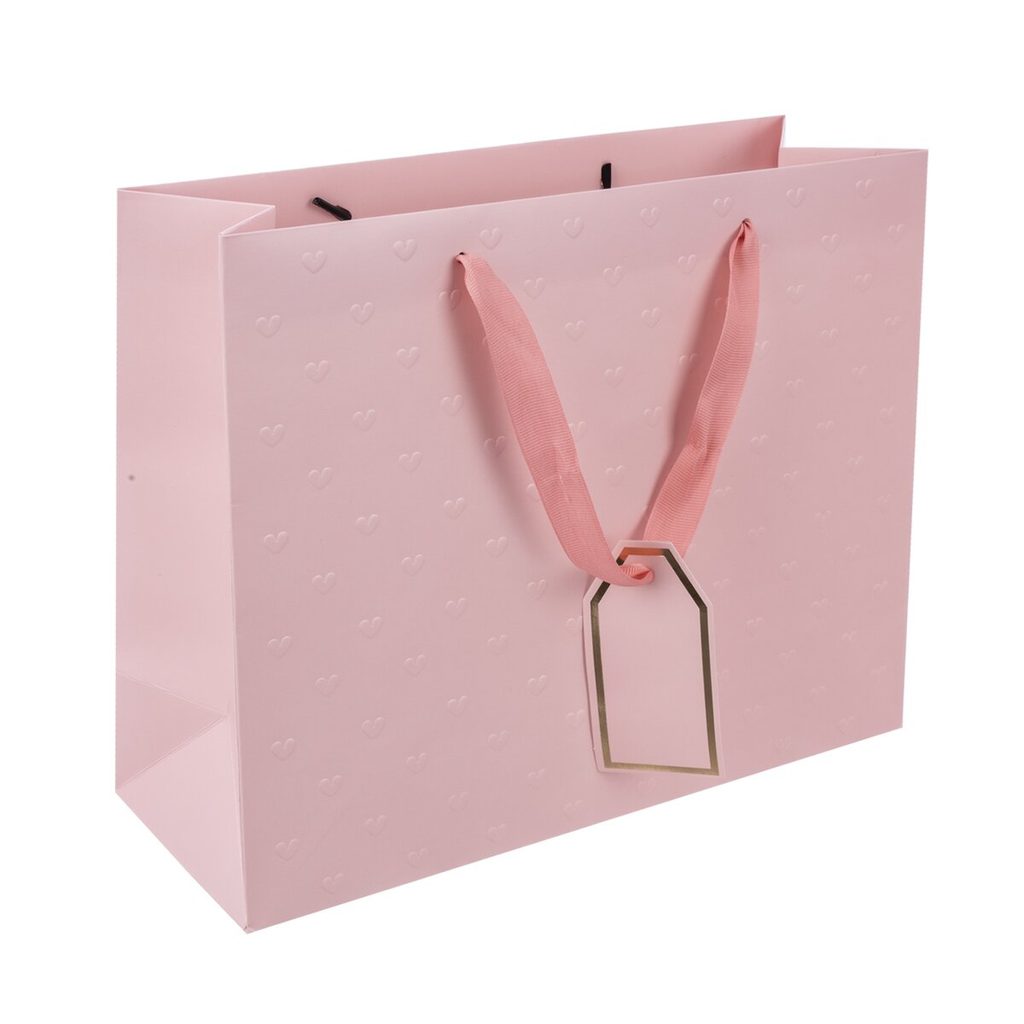 O Taška papír dárková vytlač. srdíčka 31x12x26 cm růžová