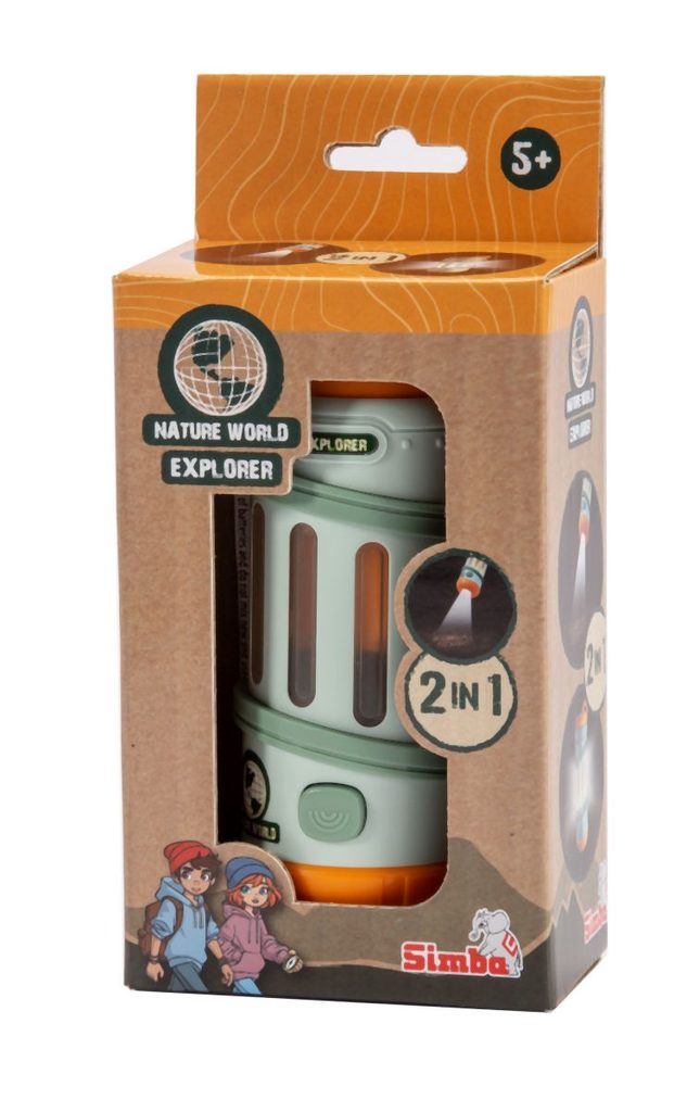 Baterka 2v1 která slouží jako klasická baterka anebo jako stojící svítilna s 360° svícením. S popruhem na zápěstí. Velikost baterky je 13 cm.