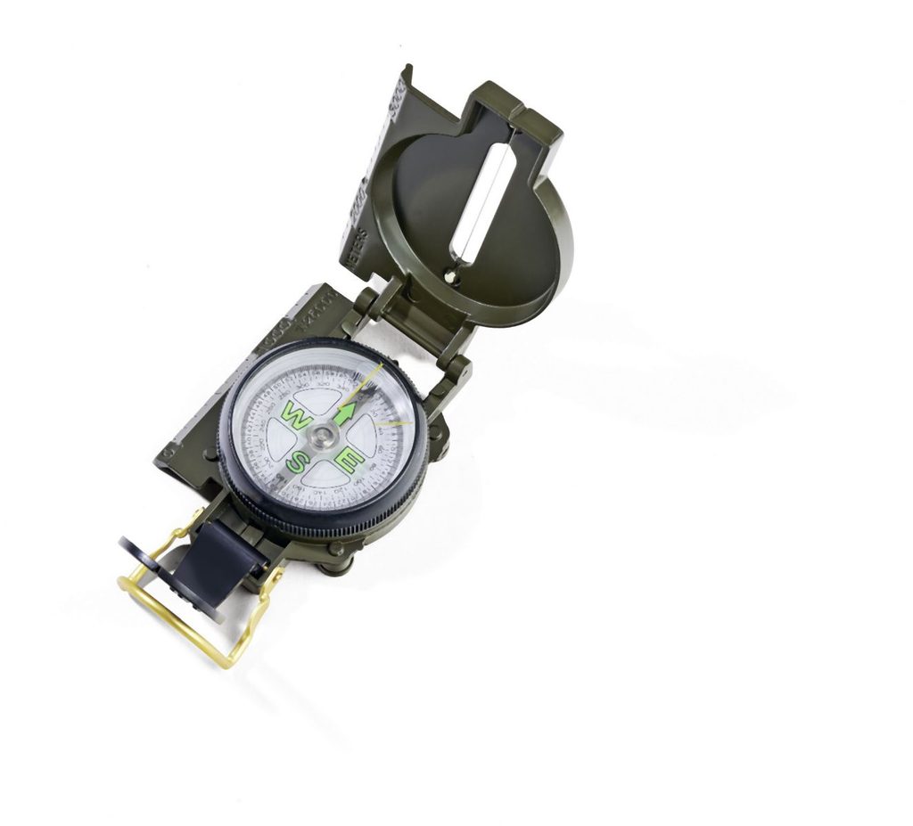 Kompas s kovovým pouzdrem s výklopným víkem a hledí. Velikost kompasu 5,2 cm.