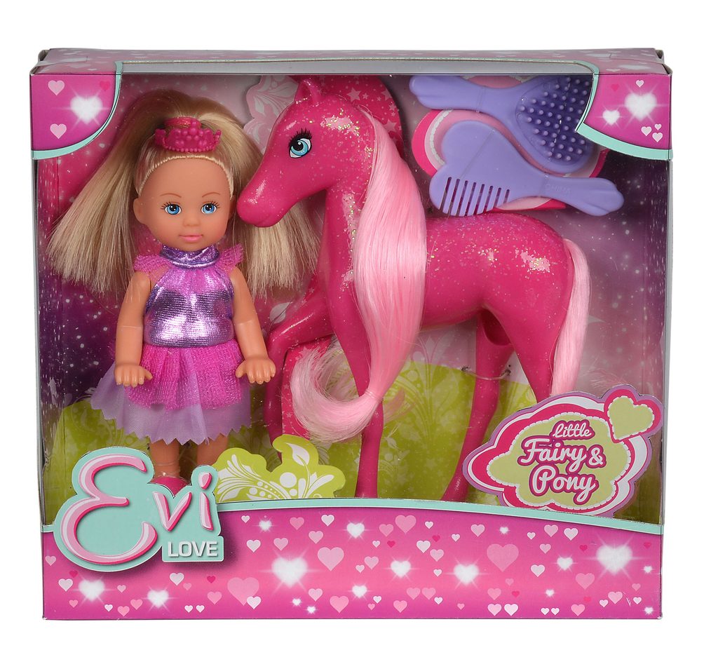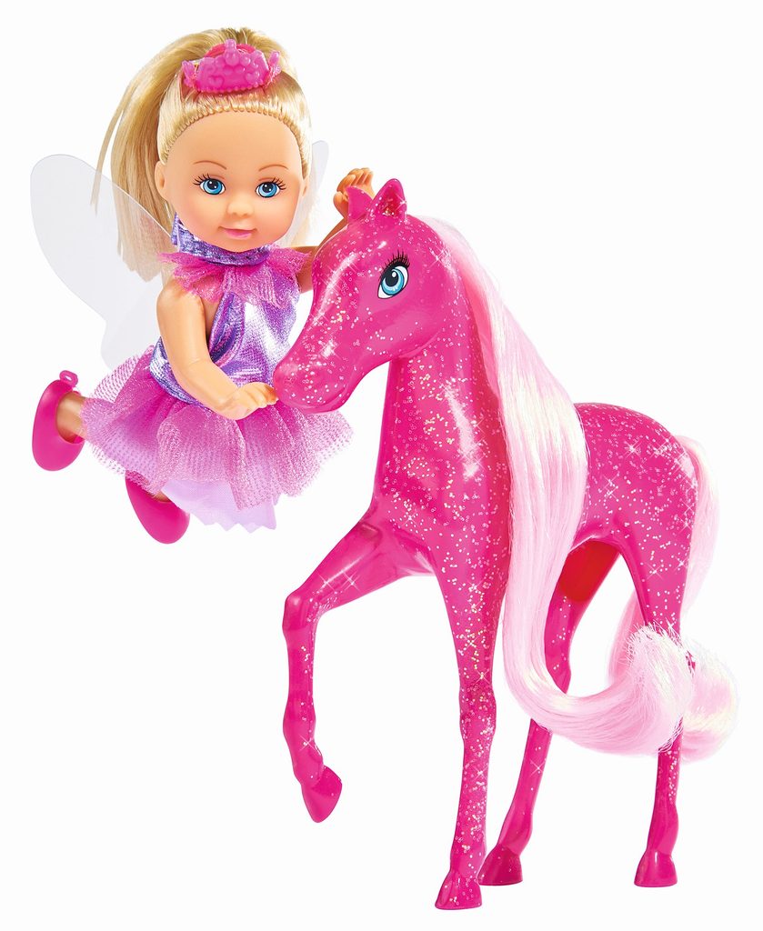 Panenka Evička jako princezna s kouzelným poníkem se třpytivou hřívou. Výška panenky 12 cm.