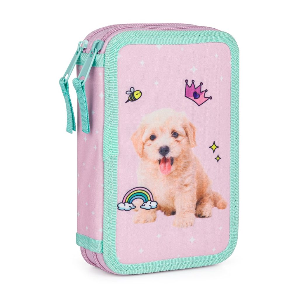 Školní penál dvoupatrový bez náplně. Penál obsahuje 25 gumových poutek pro uložení všech psacích potřeba a drobností potřebných k výuce. Penál má pevný zip s velkými taháčky pro snadnou manipulaci. Jedno patro je opatřeno průhlednou přihrádkou pro týdenní rozvrh.