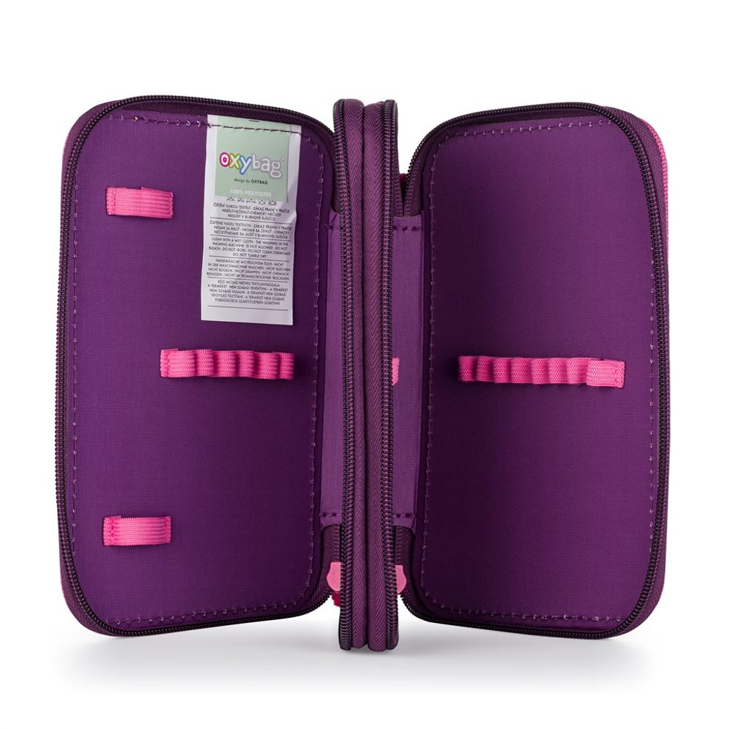 Školní penál dvoupatrový bez náplně. Penál obsahuje 25 gumových poutek pro uložení všech psacích potřeba a drobností potřebných k výuce. Penál má pevný zip s velkými taháčky pro snadnou manipulaci. Jedno patro je opatřeno průhlednou přihrádkou pro týdenní rozvrh.