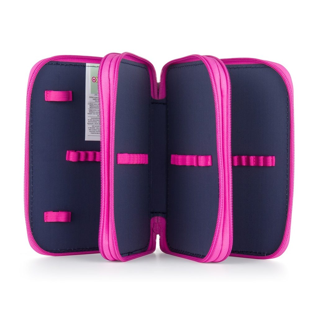 Penál obsahuje 40 gumových poutek pro uložení všech psacích potřeb a drobností potřebných k výuce. Penál má pevný zip s velkými taháčky pro snadnou manipulaci. Jedno patro je opatřeno průhlednou přihrádkou pro týdenní rozvrh.