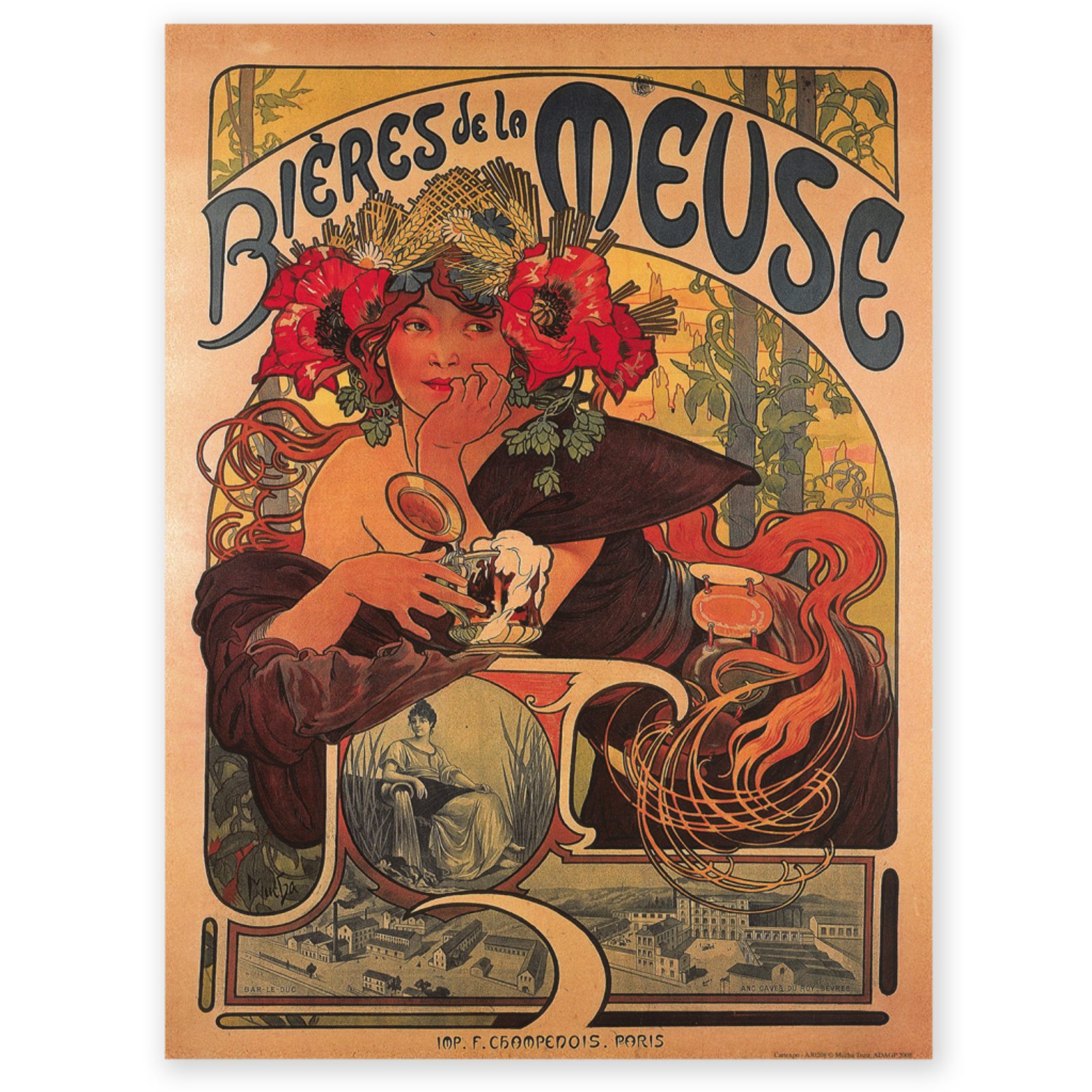 Plakát Alfons Mucha Bieres, 24 x 32 cm