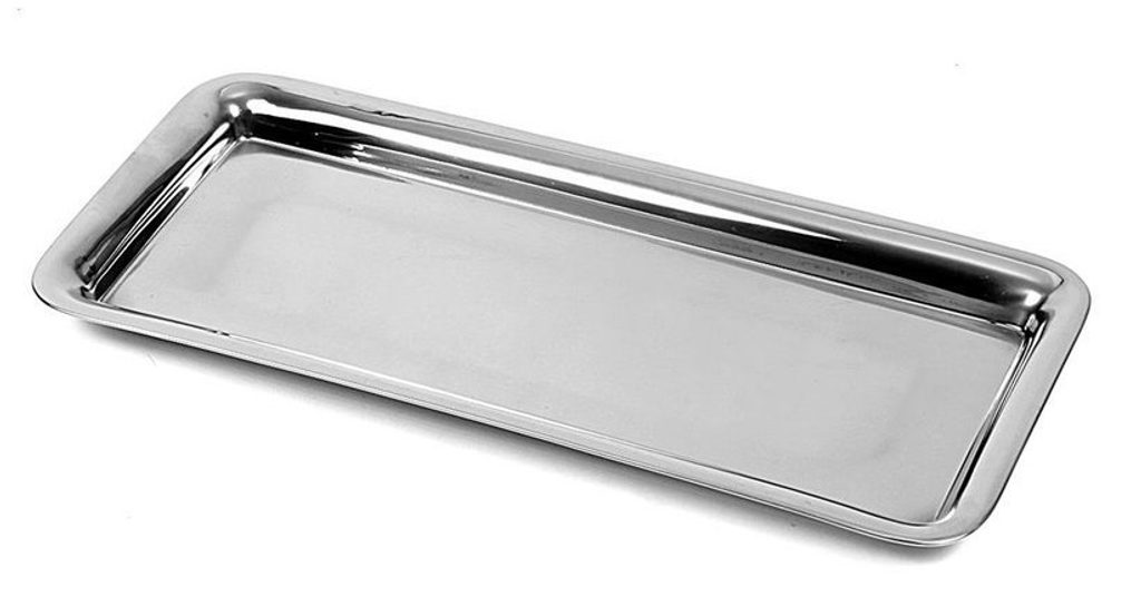 Tác, který skvěle využijete pro servírování rakviček se šlehačkou i chlebíčků. Materiál: nerez. Rozměry: 38,5x17x1,8 cm.